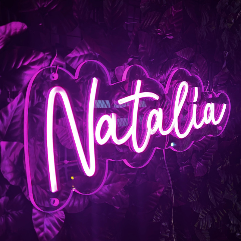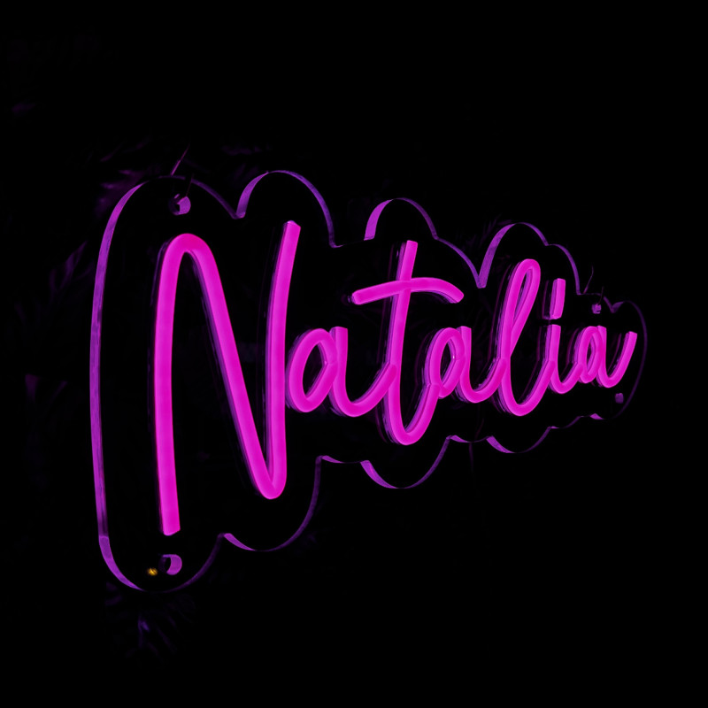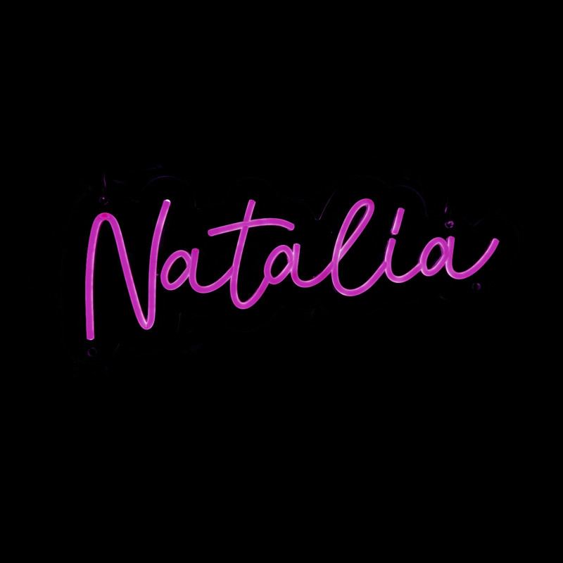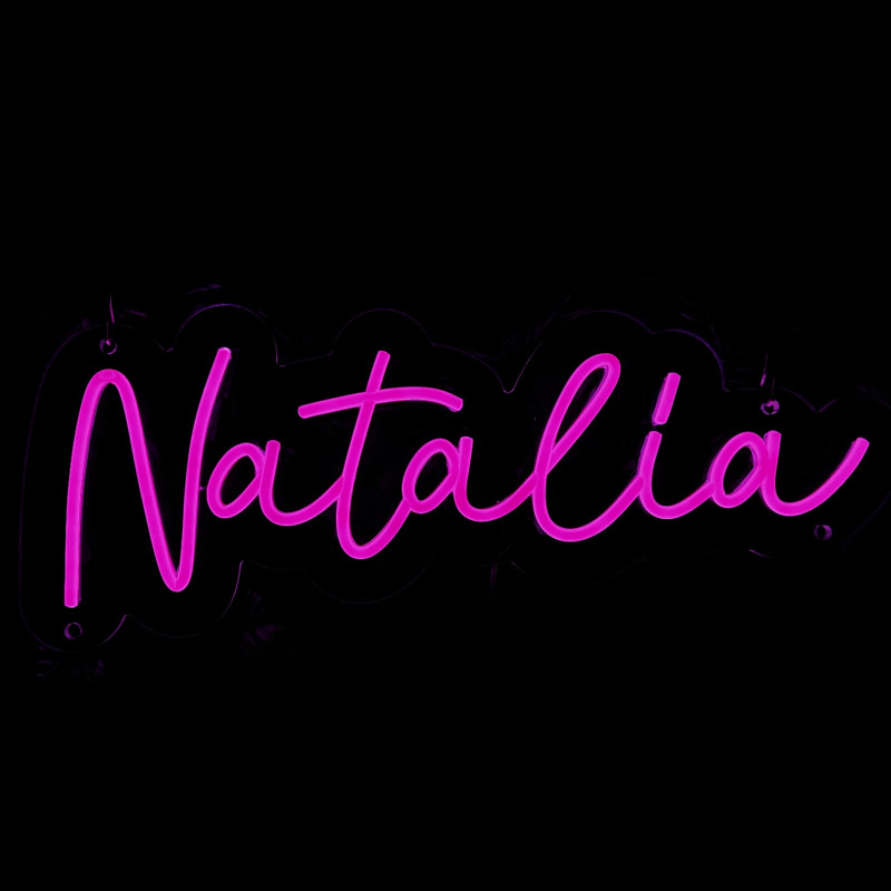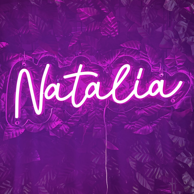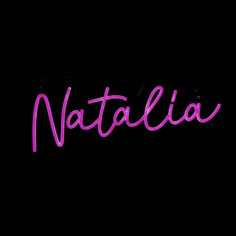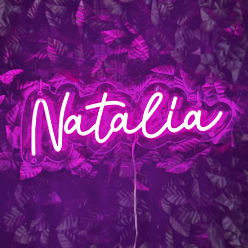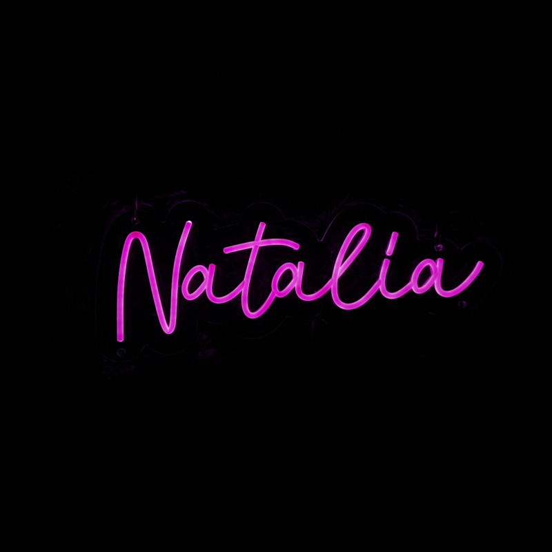 Das Leuchtschild Natalia ist ein vielseitiges Name Sign für Fassade, Empfang, Studio, Schaufenster oder Event-Deko. Schlanke Bauweise, gleichmäßige Ausleuchtung, saubere Montage, starke Foto/Video-Wirkung. Schnell anpassbar in Größe, Farben, Schrift und Finish.