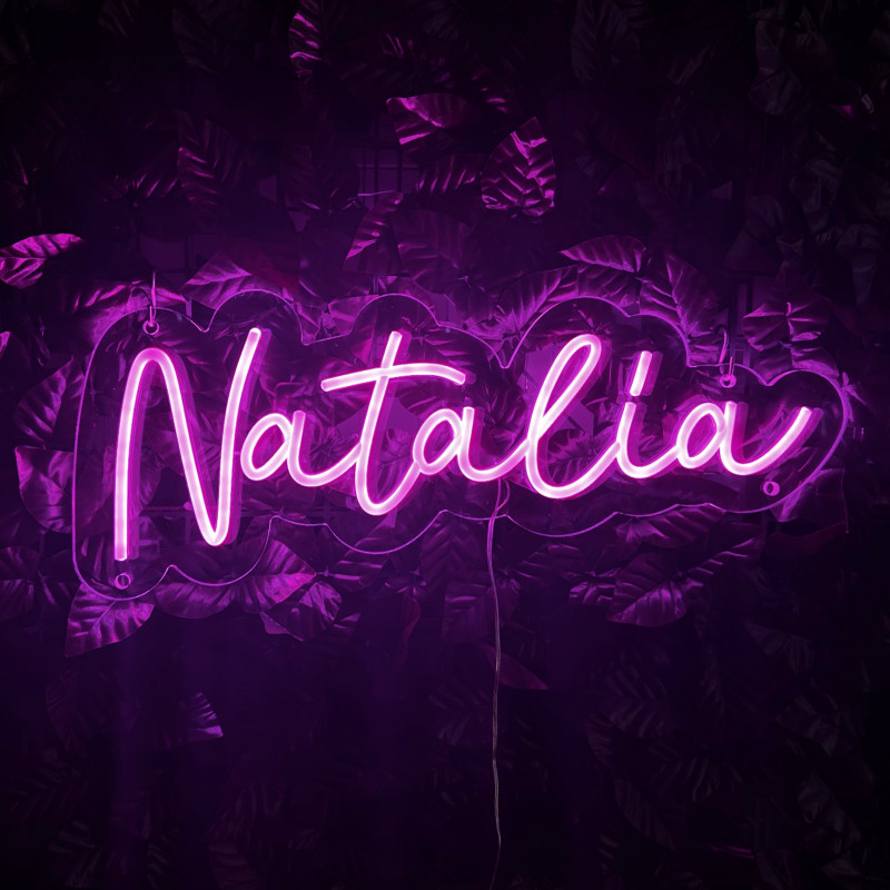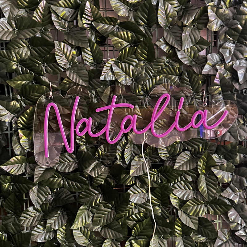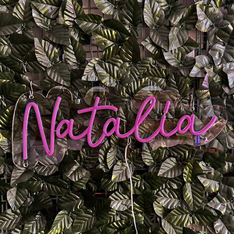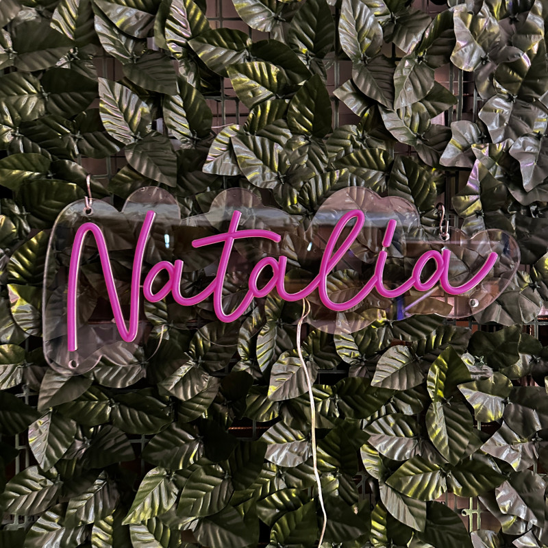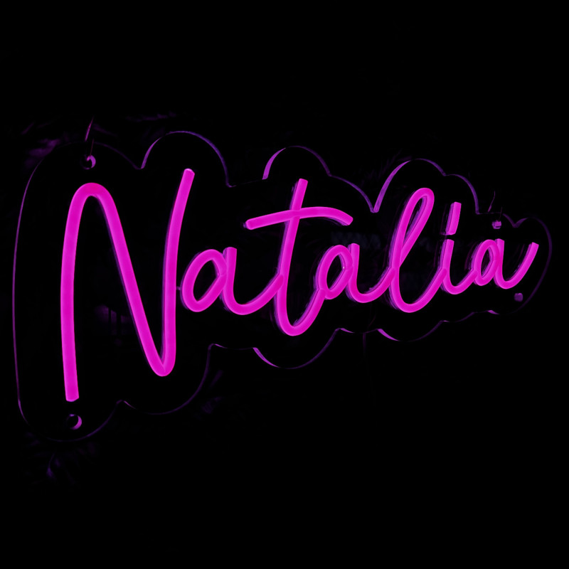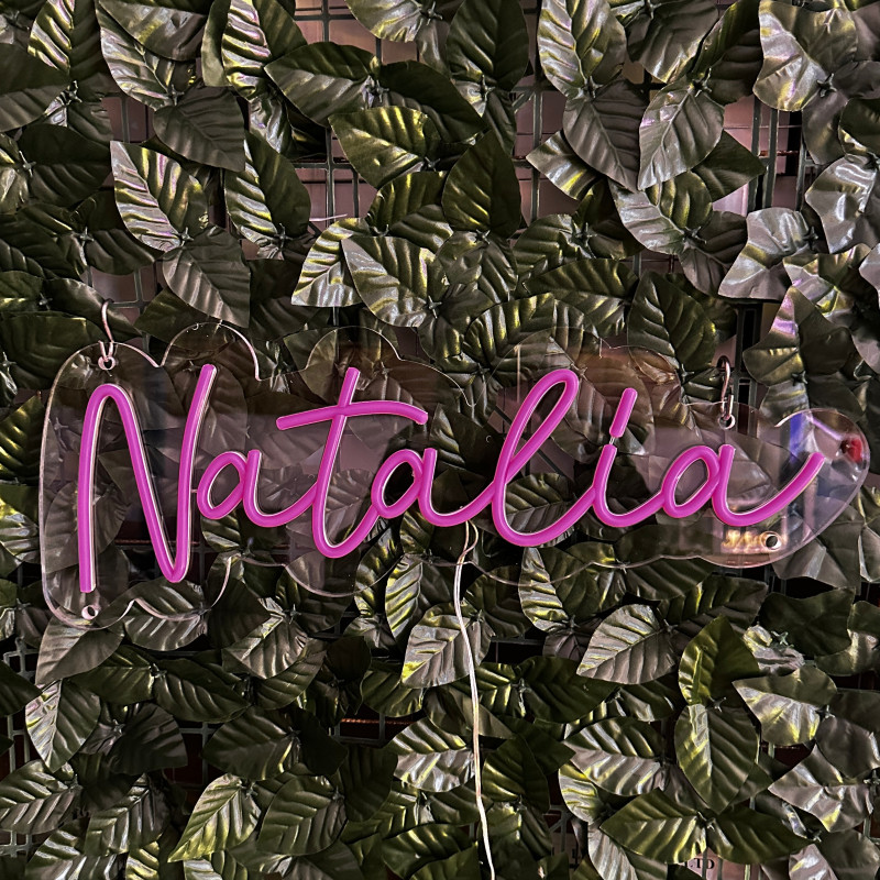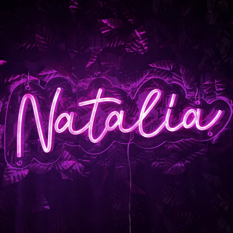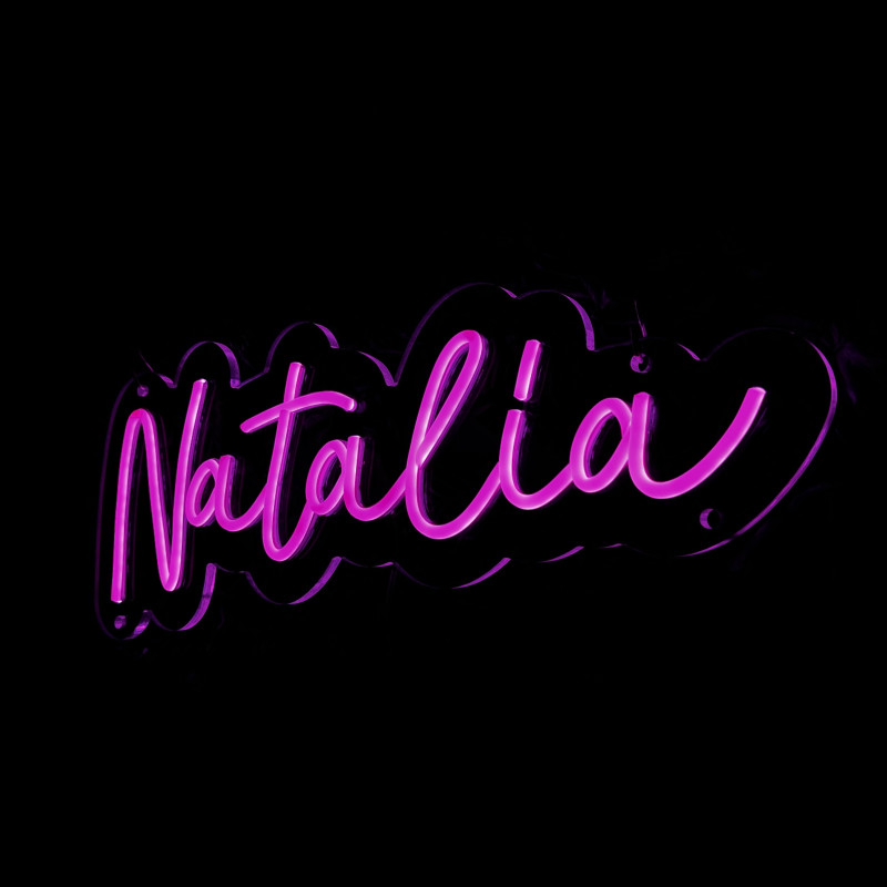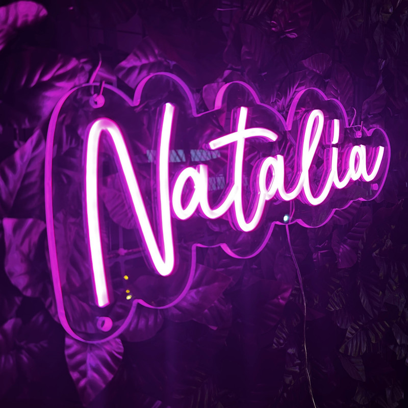 Das Leuchtschild Natalia ist ein vielseitiges Name Sign für Fassade, Empfang, Studio, Schaufenster oder Event-Deko. Schlanke Bauweise, gleichmäßige Ausleuchtung, saubere Montage, starke Foto/Video-Wirkung. Schnell anpassbar in Größe, Farben, Schrift und Finish.