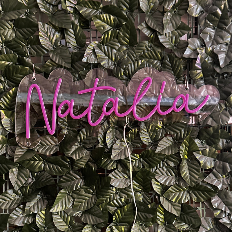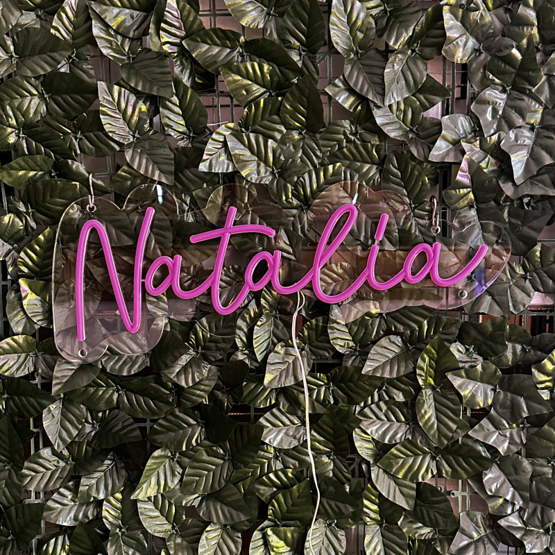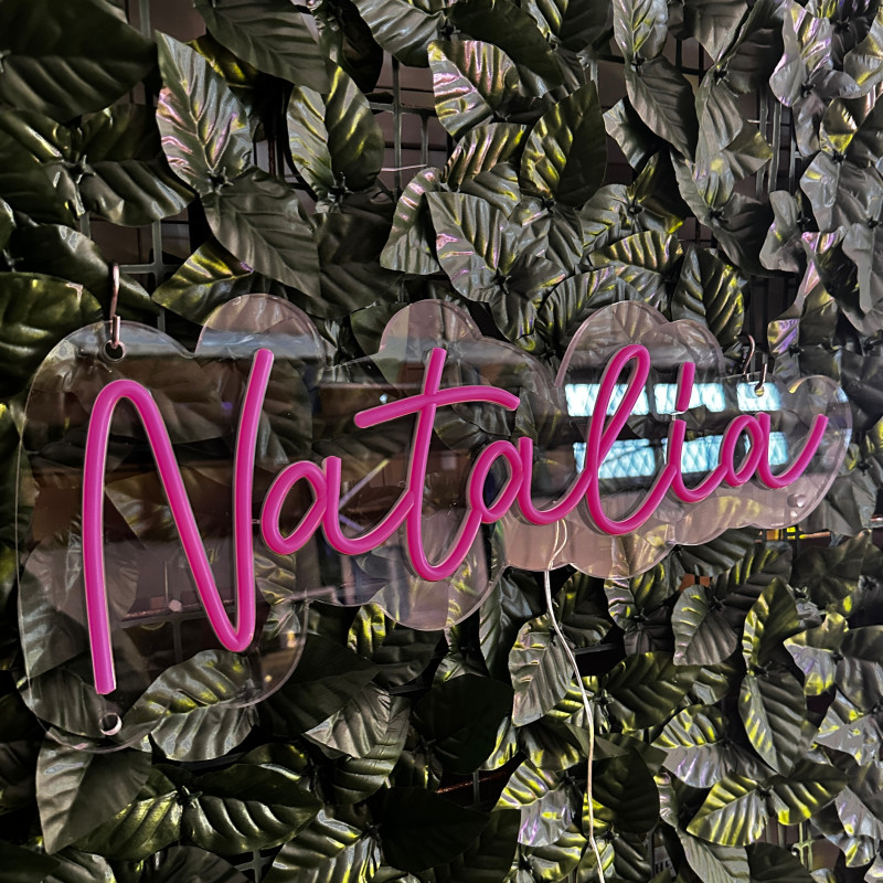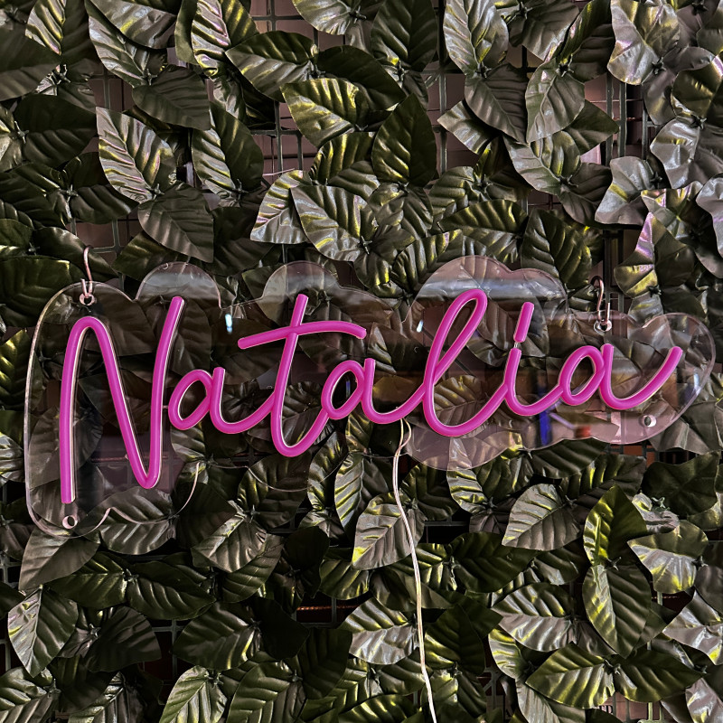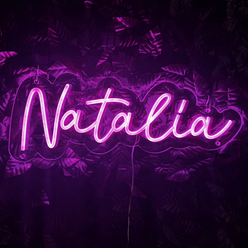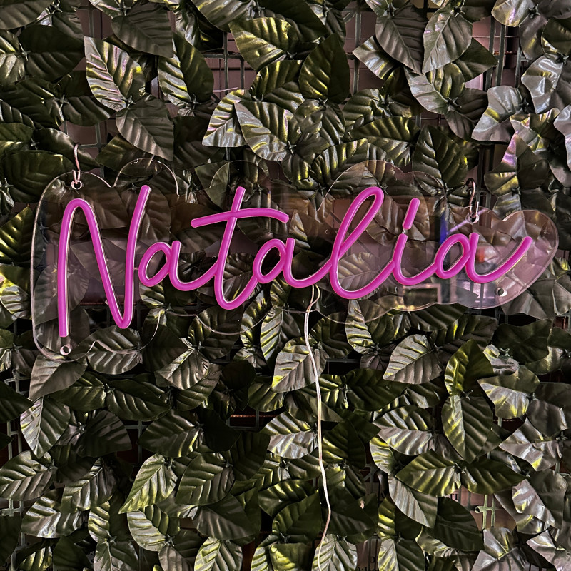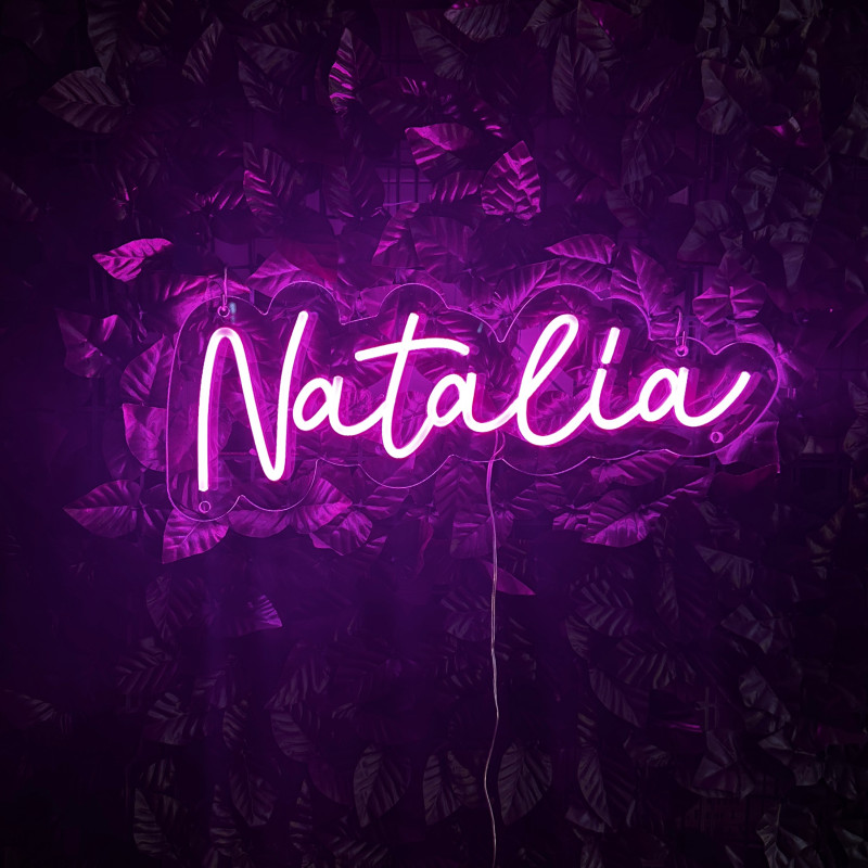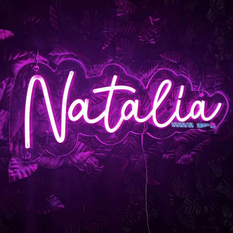 Das Leuchtschild Natalia ist ein vielseitiges Name Sign für Fassade, Empfang, Studio, Schaufenster oder Event-Deko. Schlanke Bauweise, gleichmäßige Ausleuchtung, saubere Montage, starke Foto/Video-Wirkung. Schnell anpassbar in Größe, Farben, Schrift und Finish.