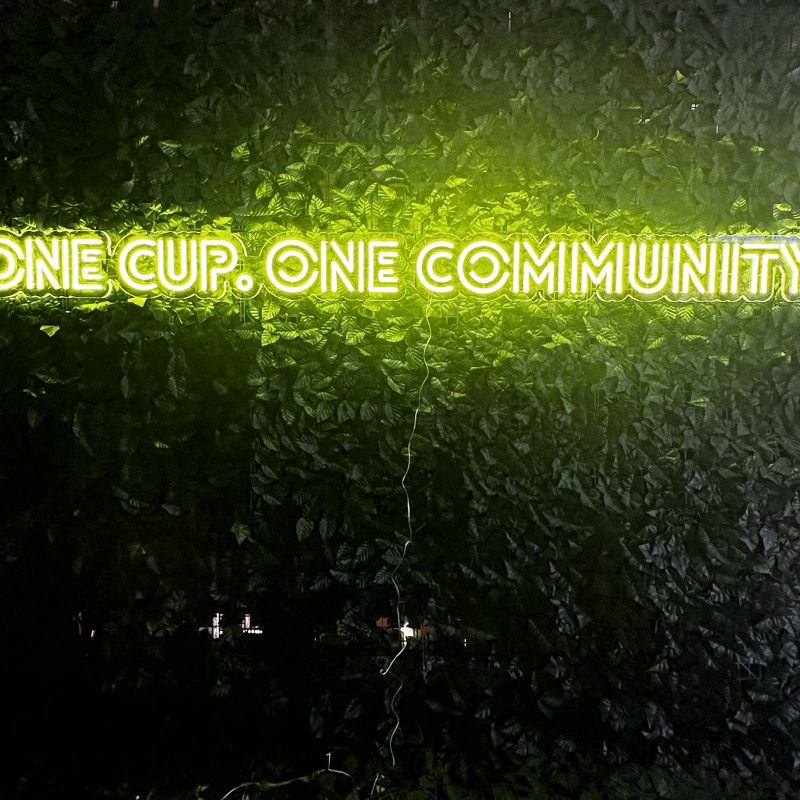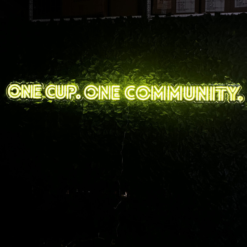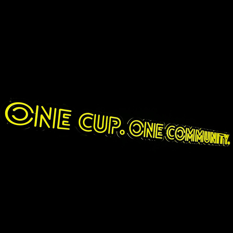 Volt Coffee ist eine Specialty Coffee Marke mit Fokus auf Frische, sorgfältige Röstung und Community. Das Leuchtschild ONE CUP. ONE COMMUNITY dient als Brand Anker für Bar, Servicebereich, Schaufenster oder Brand Wall. Schlanke Bauweise, gleichmäßige Ausleuchtung, saubere Montage, starke Foto Video Wirkung. Anpassbar in Größe, Farben und Finish.