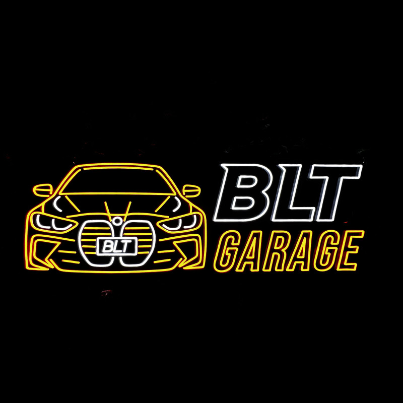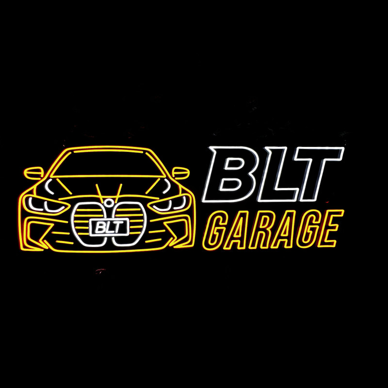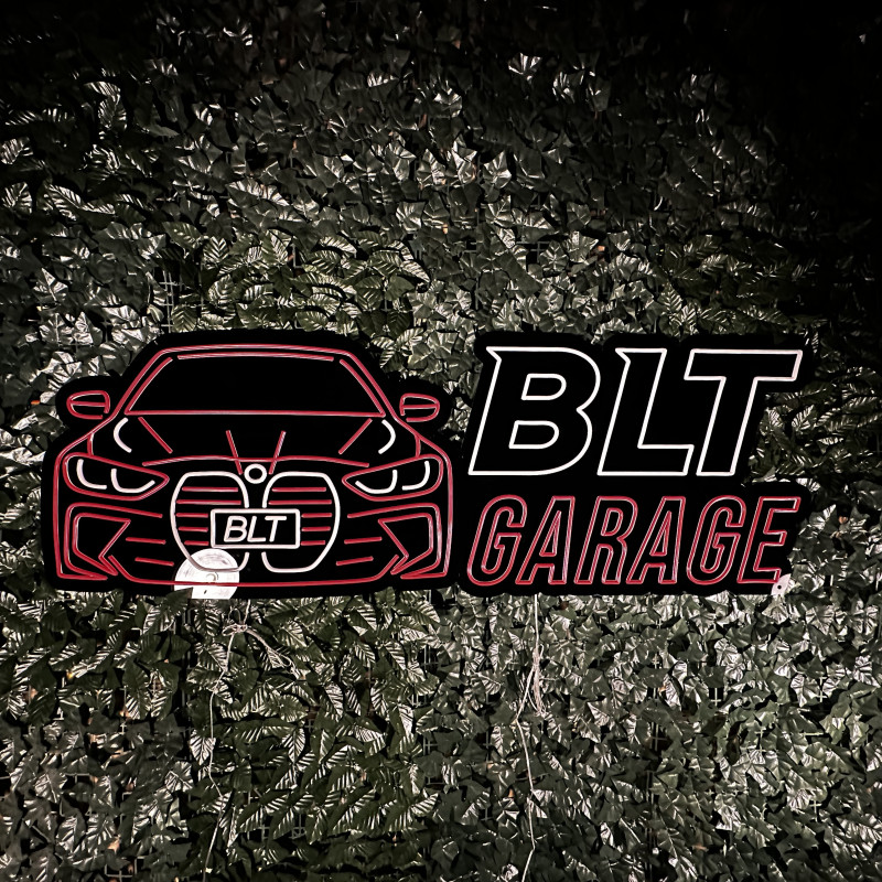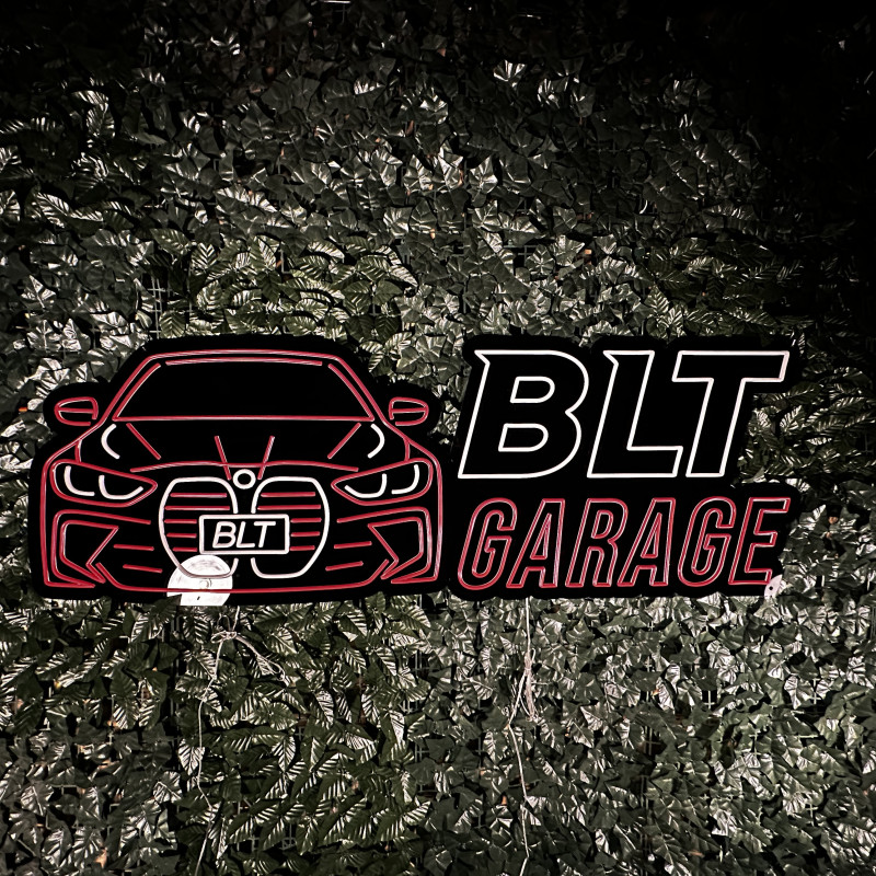 Built to be seen on the move. “BLT GARAGE” is a LED neon for façades and interiors—reception, brand wall, or delivery bay—that instantly clarifies an auto service identity. Slim, energy-efficient, easy to install; quickly customizable (size, colors, type) or adaptable to other names/logos without losing impact.