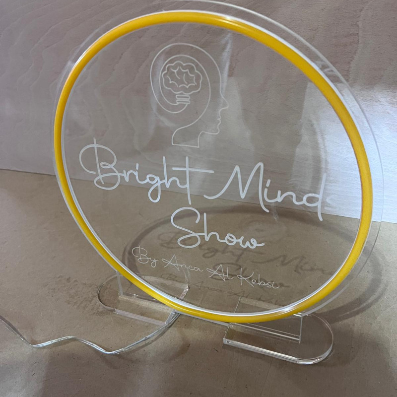 Bright Minds Show is a custom indoor luminous sign that combines strong visibility with elegant details. Lit with lemon yellow LED strip, covered with lemon yellow silicone, it creates a vibrant and uniform effect. The regular cut design highlights the brand’s clean lines, while the transparent plexiglass with engraving adds refinement and modernity.