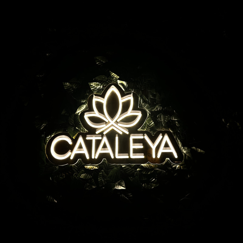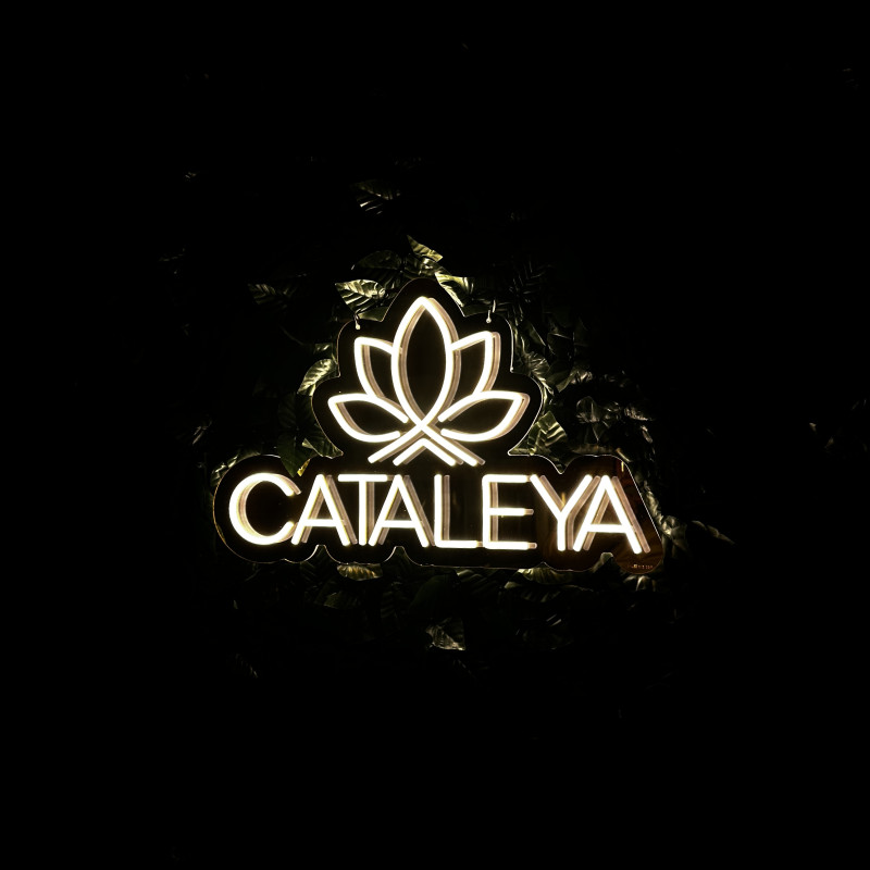 A logo built to be seen and remembered. “CATALEYA” is a slim, uniform-glow lighted sign for façades, receptions, brand walls, or photo spots. Quickly customizable in size, colors, and finishes, and adaptable to other names or identities without losing impact.