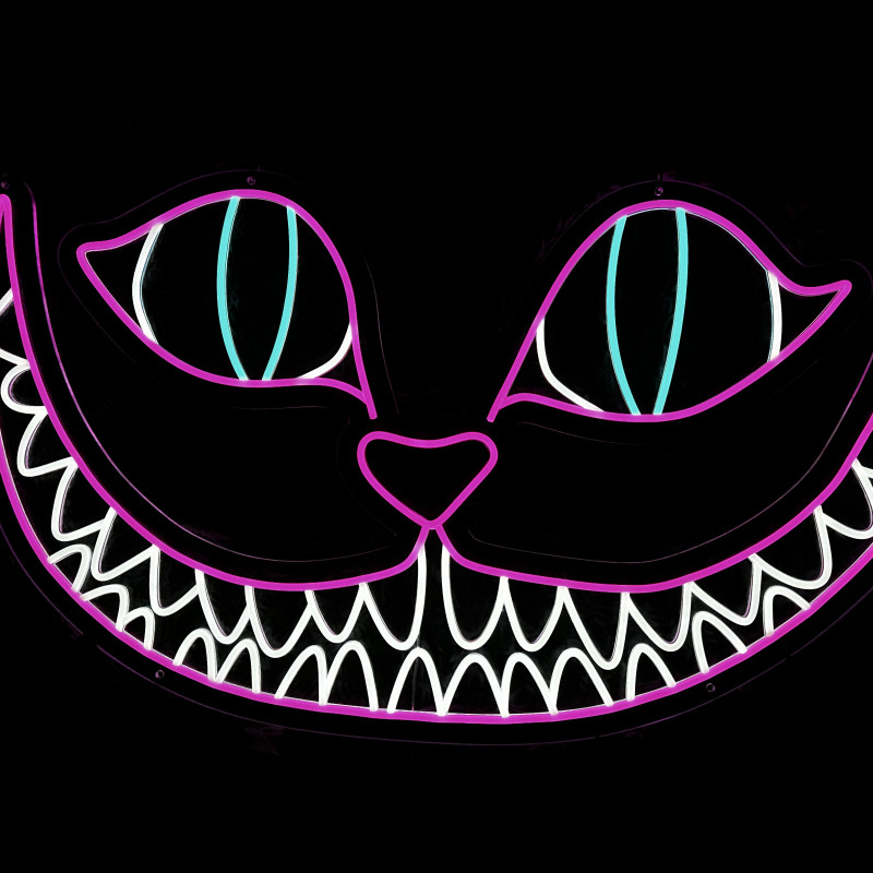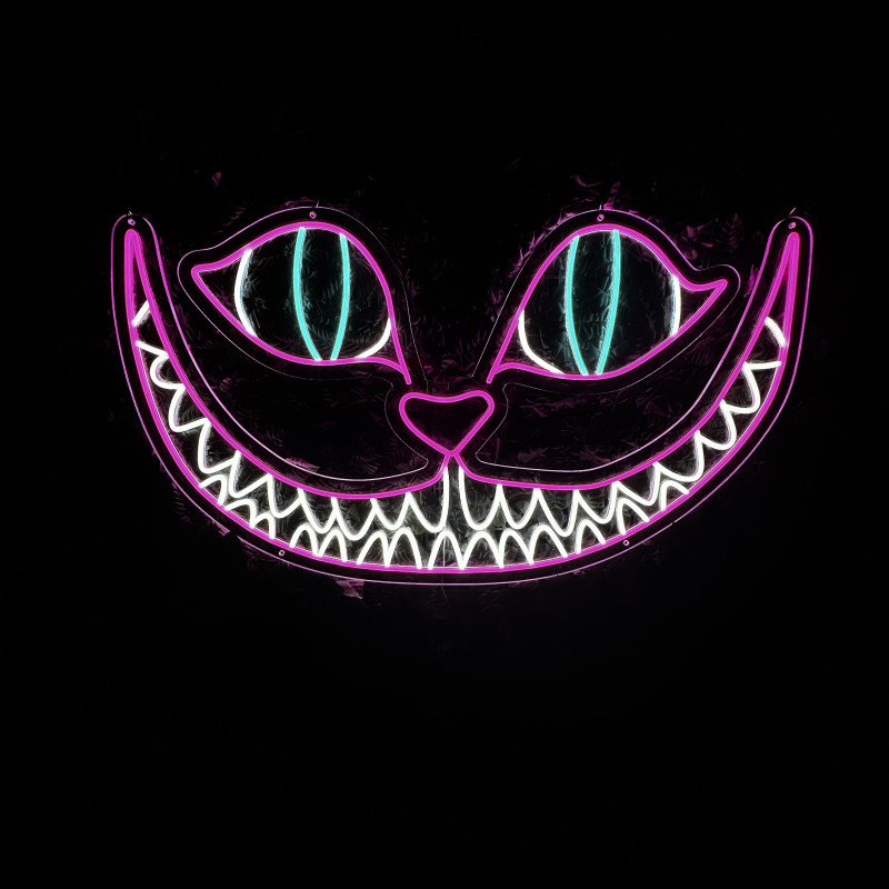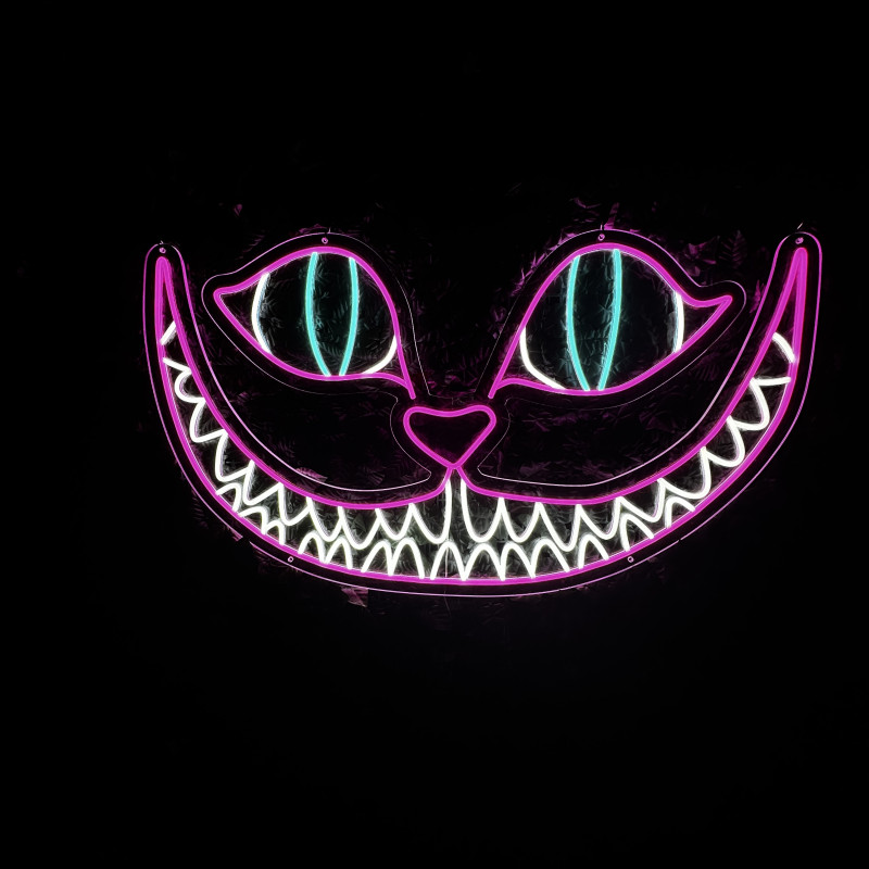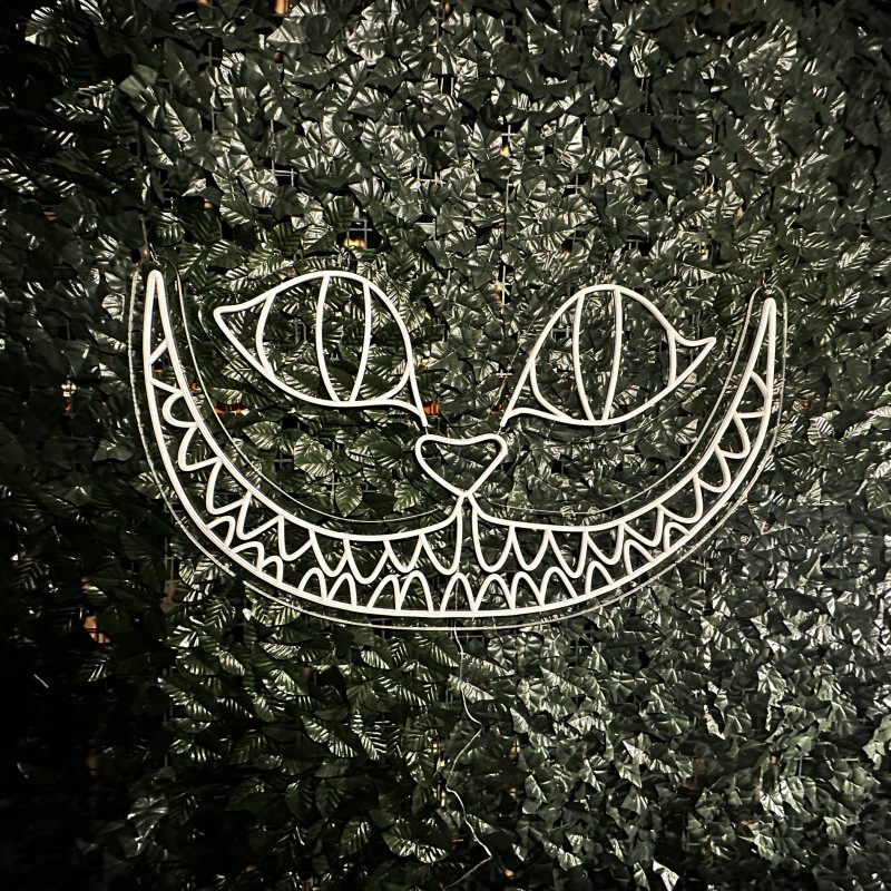 Flores y Amores is a floral & event styling studio in Germany, known for immersive décor for weddings, corporate and private events. We created the “Cheshire Cat” lighted sign—an expressive symbol built for green walls, bars, or entrances. Slim outline, uniform glow, high contrast on photo/video, and clean mounting. Fast customization in size, colors, and finishes to match any event theme.