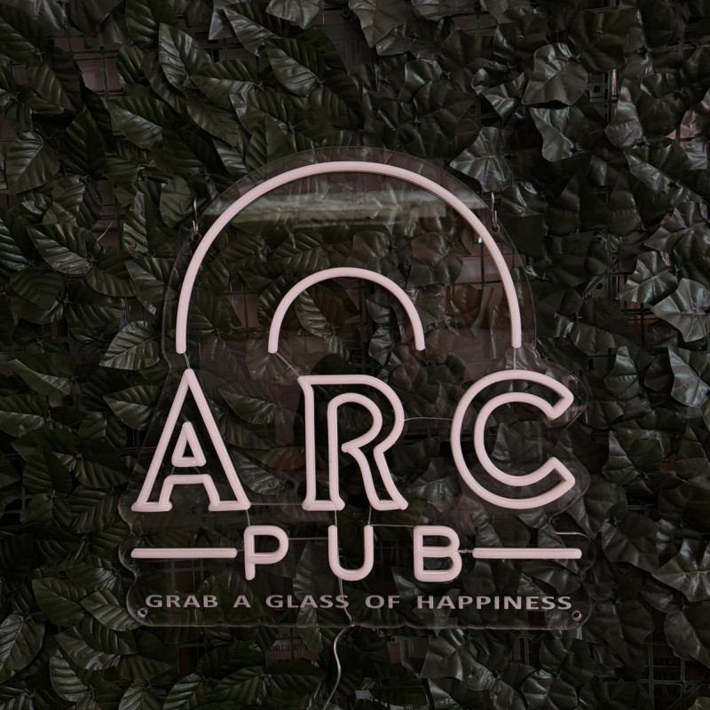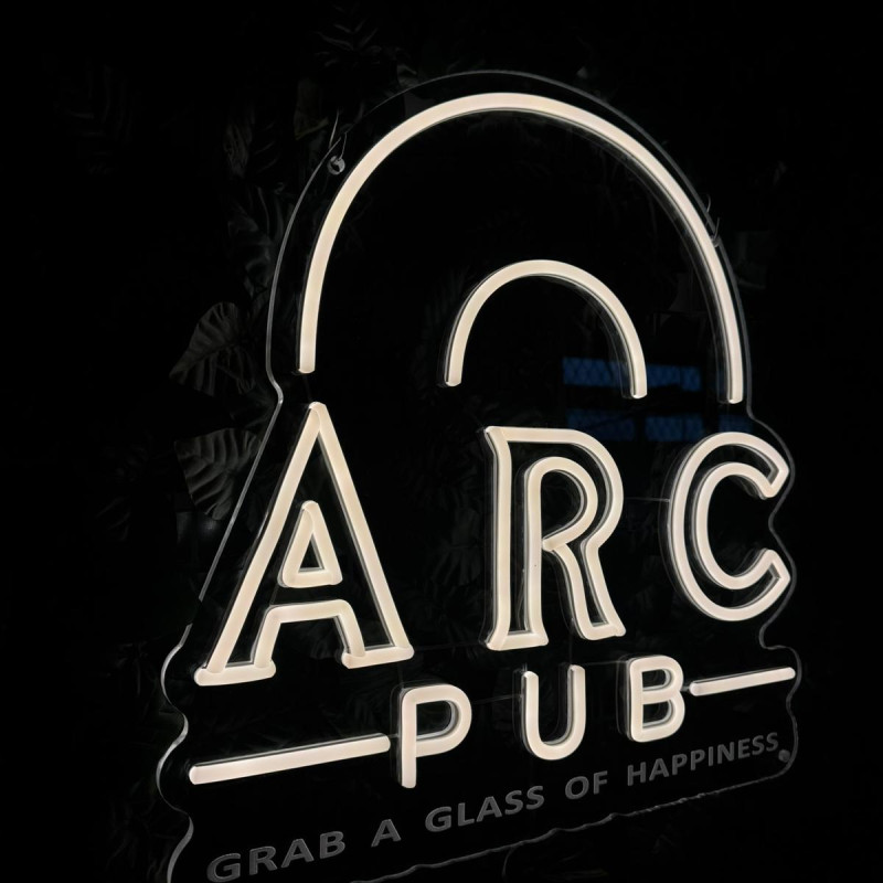 artLEDistic produced in Romania a custom LED neon sign ARC PUB for indoor use. The design includes an illuminated arch, ARC PUB text and engraved message Grab a glass of happiness.