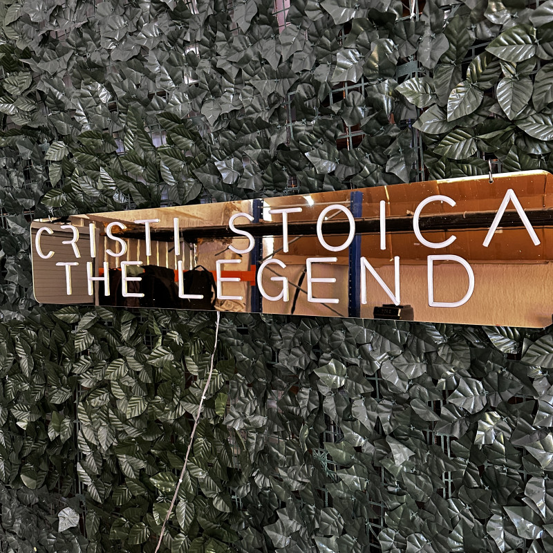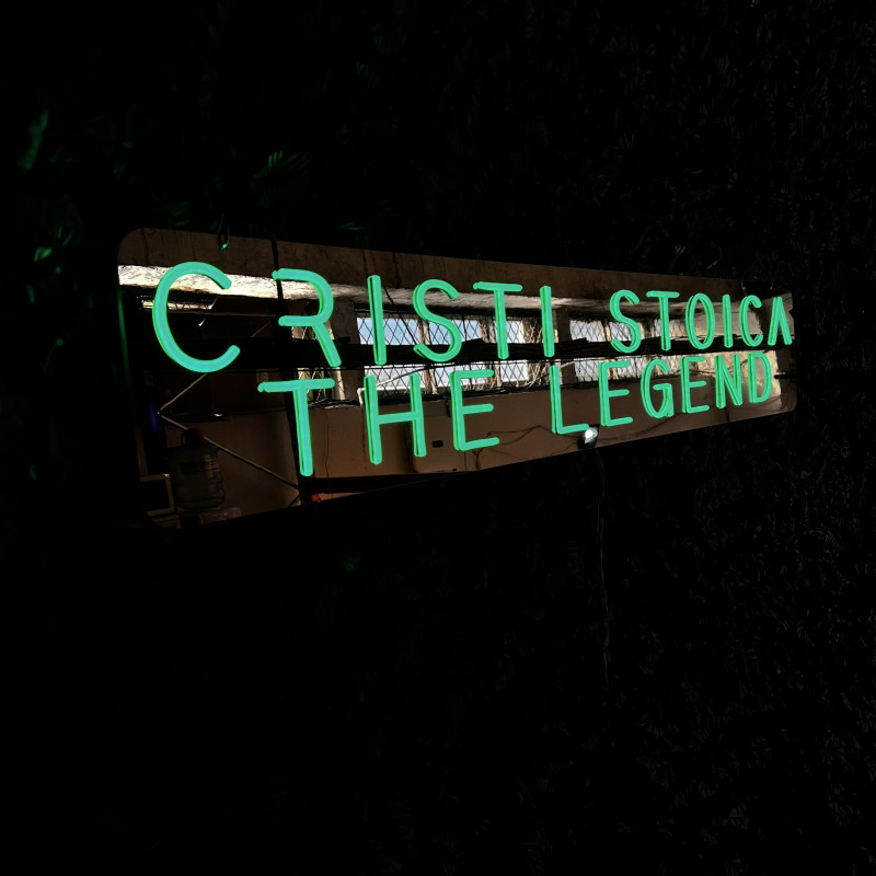 The "Cristi Stoica THE LEGEND" LED illuminated sign was created using the artLEDistic online configurator and is intended for indoor use. The total dimensions are 133 cm in length and 24 cm in height, with a text size of 127 x 18 cm. The cut is regular, following the rectangular shape of the sign for a clean and well-defined look.