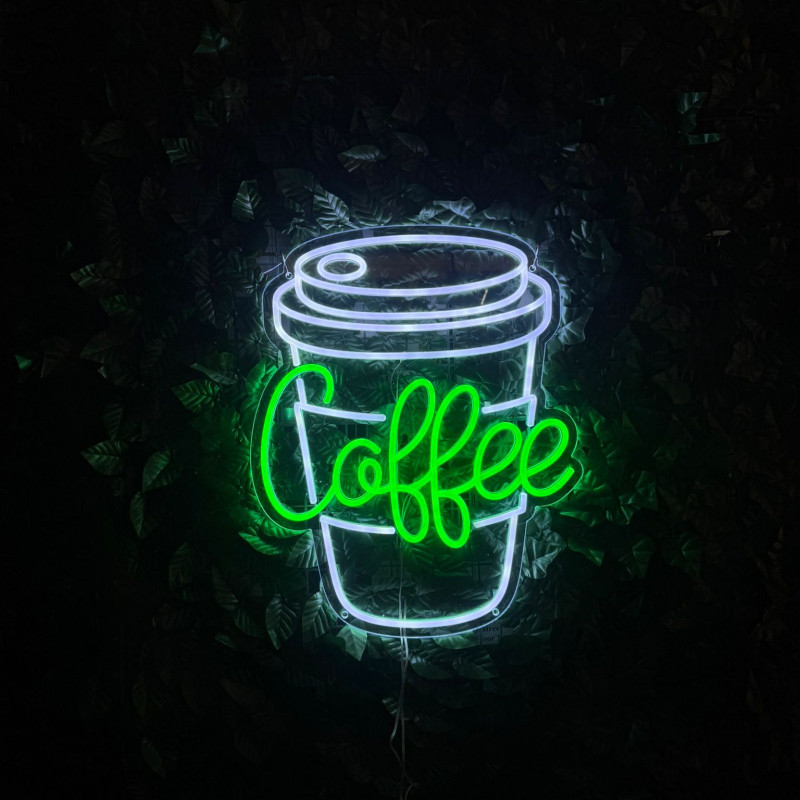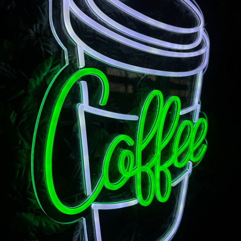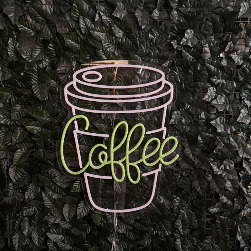 artLEDistic produced in Romania a custom LED neon sign ECHO Coffee, composed of illuminated text and coffee cup symbol.