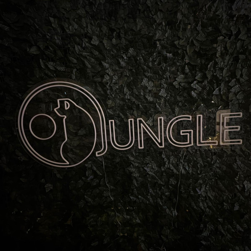 artLEDistic produced in Romania a custom LED neon sign JUNGLE with integrated giraffe symbol.
