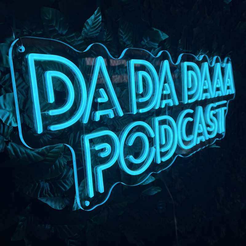 The custom LED illuminated signs "Da Da Daaa Podcast" and "Pe bune?!" are created by artLEDistic, a Romanian manufacturer specializing in LED neon signs. The project was designed for a podcast studio, where the light sign serves as a central branding element and a backdrop for filming.