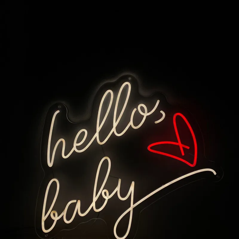 Strategically placed, the 'hello, baby' light sign can become a central decorative element or a subtle accent, depending on each individual's preferences and needs. No matter where it is placed, this light sign adds warmth and affection, encouraging interaction and creating memorable moments for loved ones.
