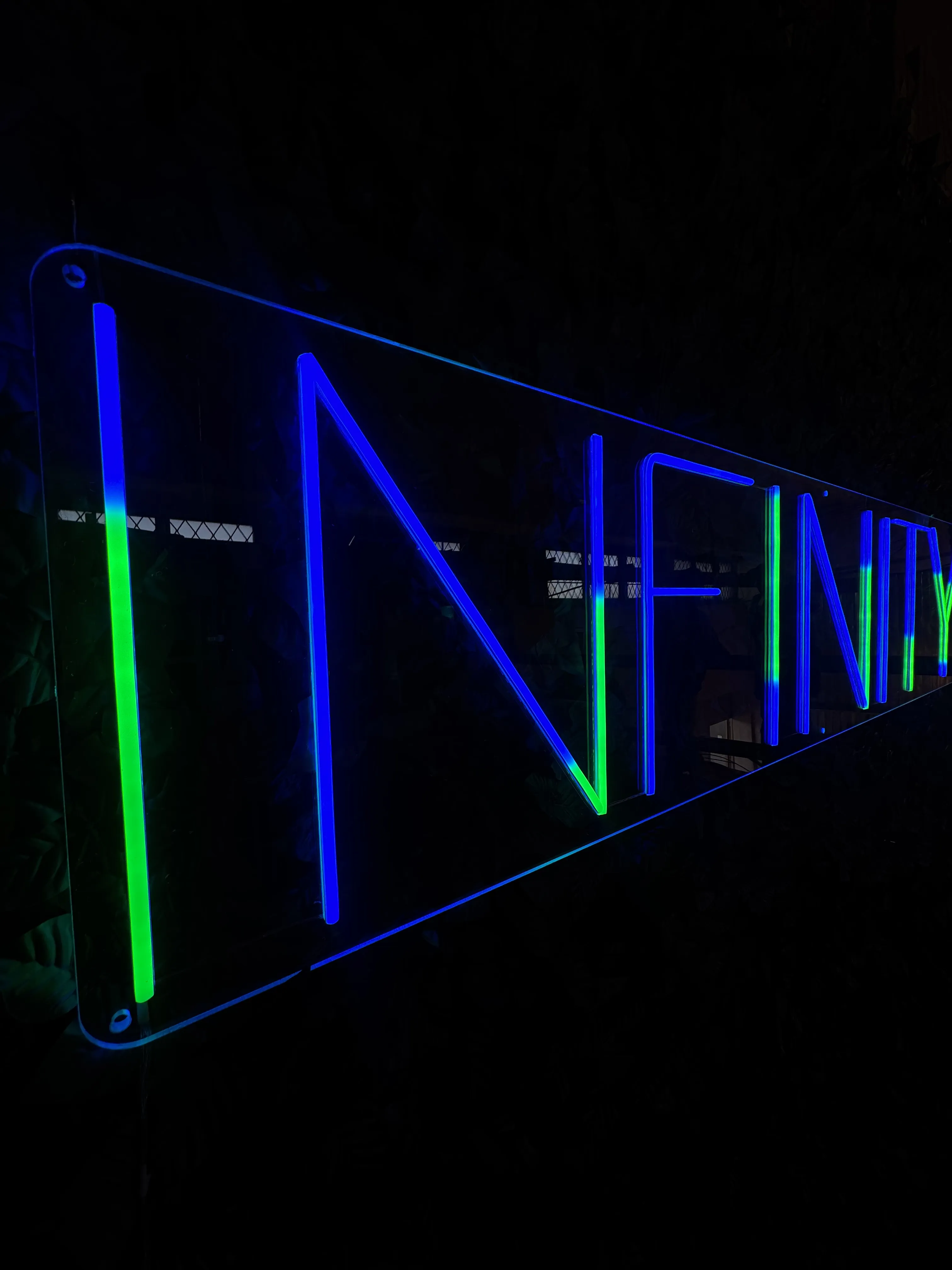 The “INFINITY” illuminated sign is made by artLEDistic, specialized in custom LED signs for indoor and outdoor use.