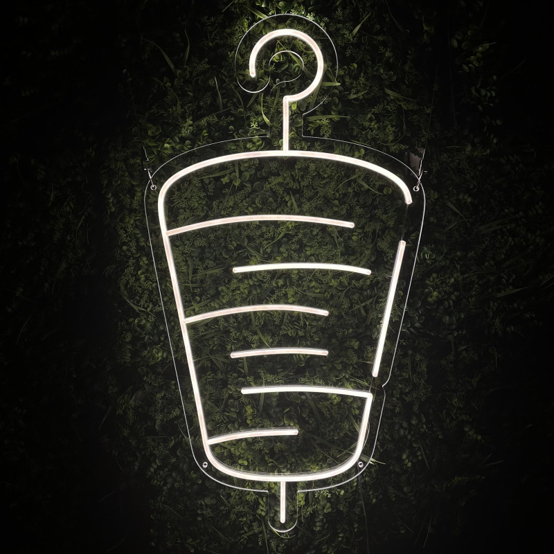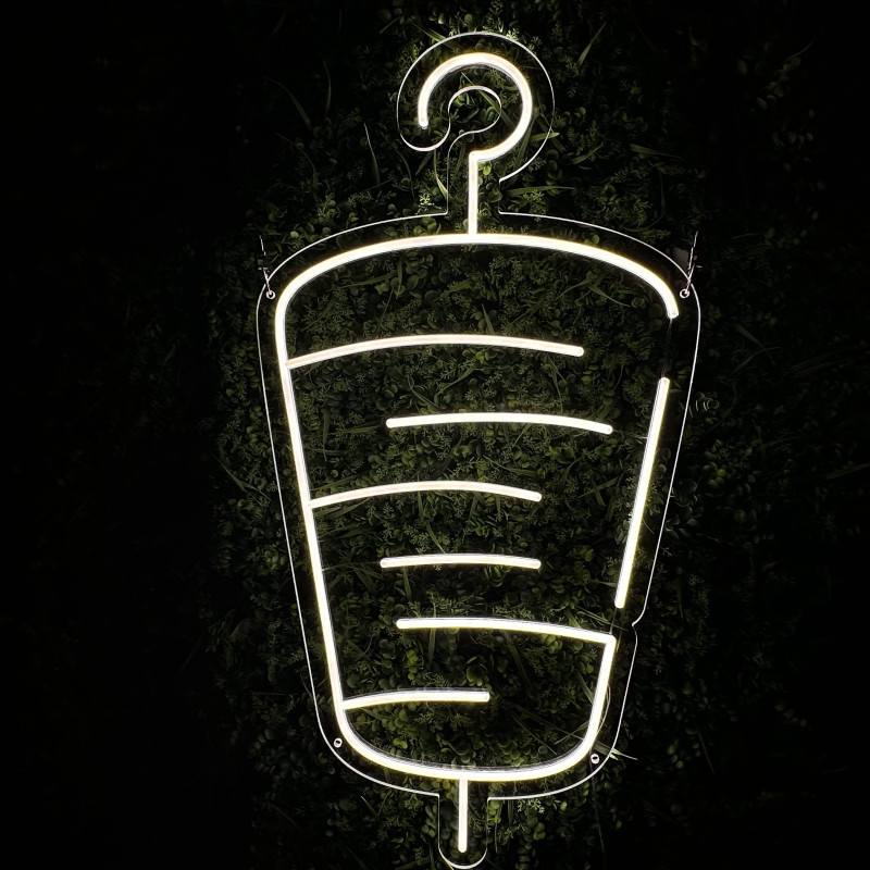 A tasty, crystal-clear duo: “LANGOS” as a luminous wordmark and “SHAWARMA” as an LED icon—recognizable at a glance. Together they mark the serving area, pull foot traffic, and create a photogenic backdrop. Slim, efficient, and easy to install; quickly customizable (size, colors, style) or adaptable to other products/brands.