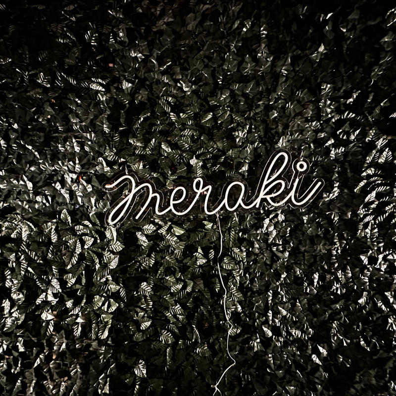 Ristorante Meraki is a seafood & Mediterranean restaurant in Calabria, focused on fresh catch and contemporary plates rooted in local tradition. The “meraki” lighted sign enhances street visibility and interior coherence (entrance, reception, photo spot) with a slim build, uniform glow, and clean mounting—easily tailored in size and color to match the brand.