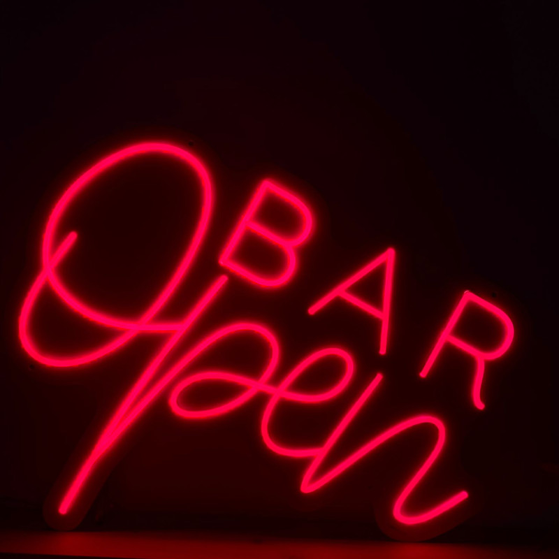 The 'Open Bar' light sign emits a vibrant and eye-catching light framed in bright pink, bringing a touch of energy and dynamism to its surroundings. With a modern and eye-catching look, this sign attracts attention and invites visitors to discover the lively atmosphere of an open bar.