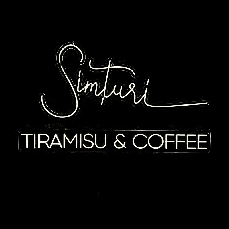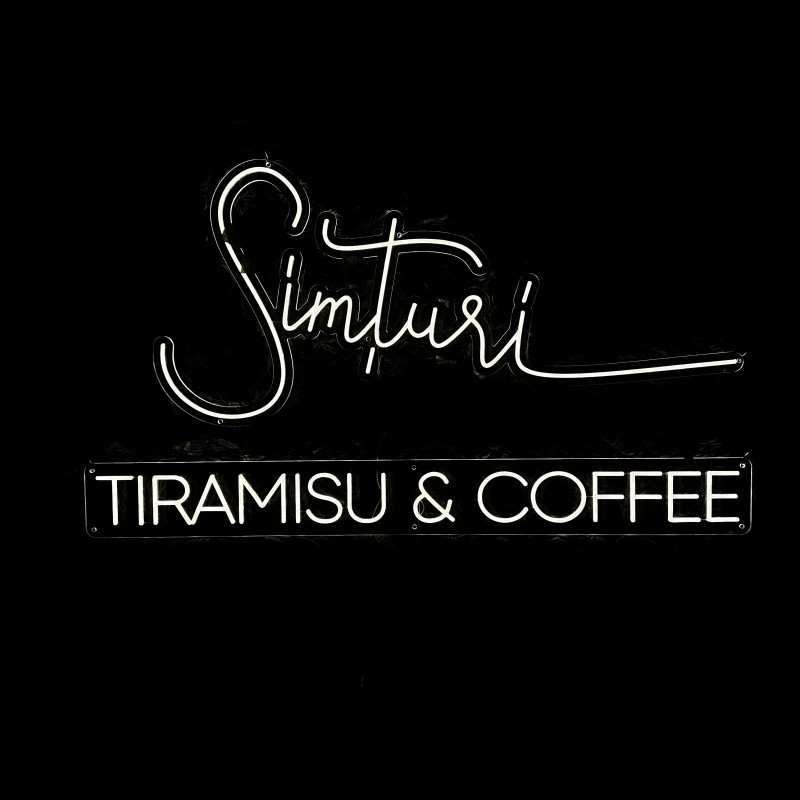 Cofetăria Simturi by Bella’s Bakery is an artisan dessert lab with modern cakes, event sweets, and elegant presentations. We created two lighted signs: “Simturi” (brand logo for entrance/reception) and “Tiramisu & Coffee” (bar/corner accent). Both feature a slim build, uniform glow, and clean mounting, easily customized in size, colors, and finishes to match the venue’s identity.