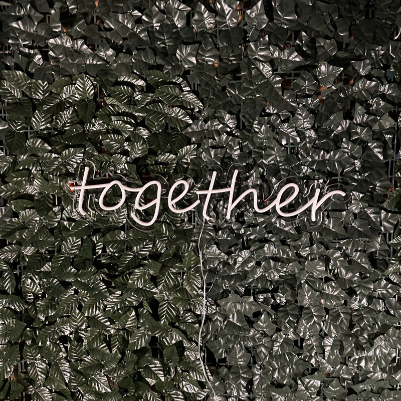 A simple word with immediate impact. “Together” brings warmth and cohesion to any space—reception, brand wall, photo spot, studio, or home. Slim, visible, and easy to install, it becomes the room’s photogenic focal point. Flexible by design: quickly customizable in size, fonts, and colors or adaptable to other words/logos.