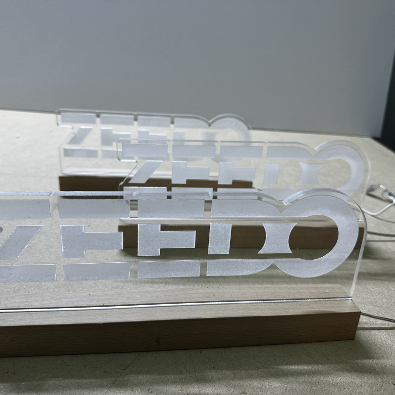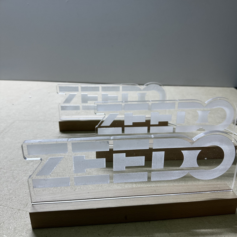 A set of lighted totems created for Zeedo Shop, the Bucharest music, pro-audio and stage-lighting retailer & showroom. Each piece is laser-engraved in frosted acrylic and edge-lit from a wooden base for even glow and a premium, counter-ready look. Compact, photogenic, and durable, the format is fully customizable (logo/message, size, iconography). Built to highlight a specialist brand with hands-on showroom expertise.