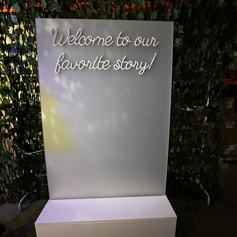 A welcome message that makes the place memorable. Lighted panel on a 1.8 m stand with the text “Welcome to our favourite story,” ideal for receptions, photo spots, events, or shopfronts. Clean design, long-range visibility, and easy customization (size, font, color, message).