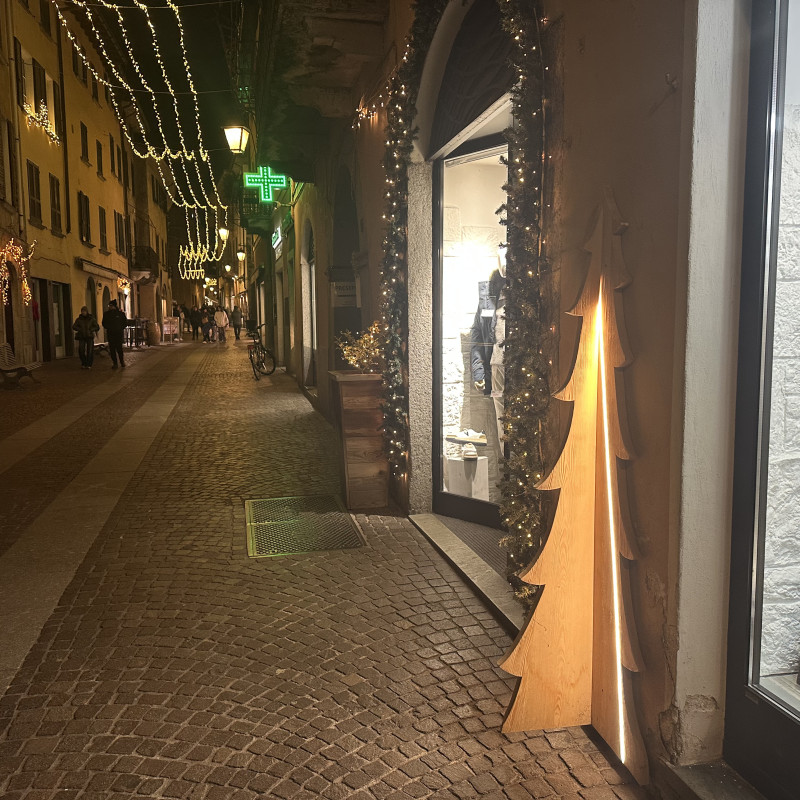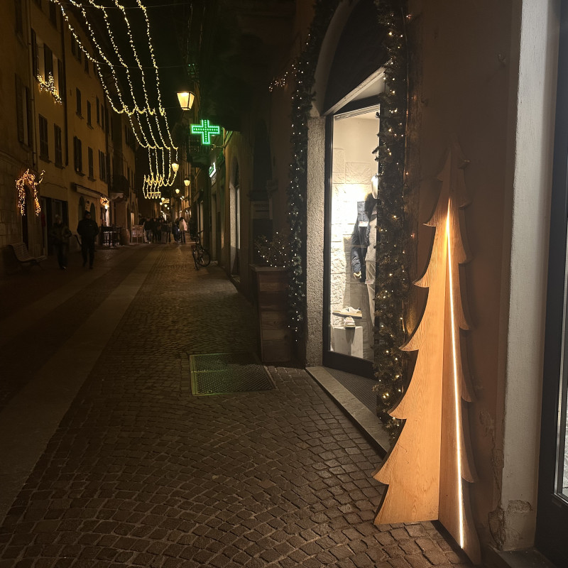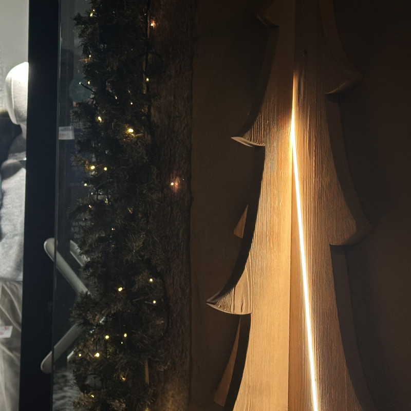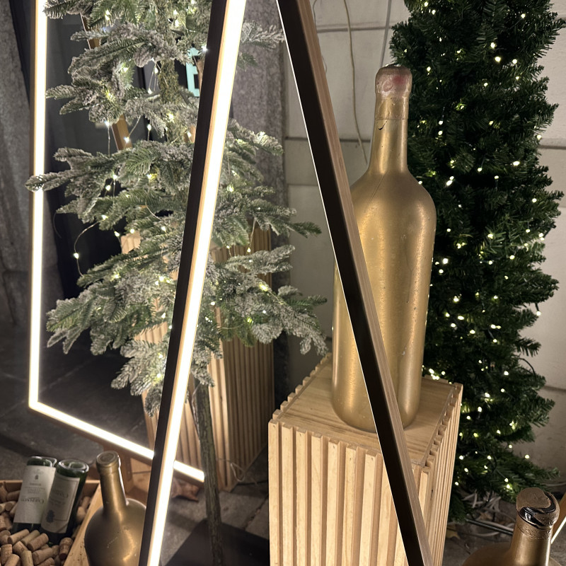 Offrez à vos projets un impact visuel distinctif avec ce sapin lumineux, conçu comme un panneau lumineux pour des décors et des aménagements thématiques. La base en bois assure stabilité et maintien, ce qui le rend adapté aux vitrines, aux espaces commerciaux et aux zones événementielles. La lumière LED chaude met en valeur la forme de l’arbre lumineux et crée un élément visuel facile à identifier. L’insegna luminosa è ideale per campagne stagionali, progetti espositivi e spazi che necessitano di un elemento decorativo ben definito.
