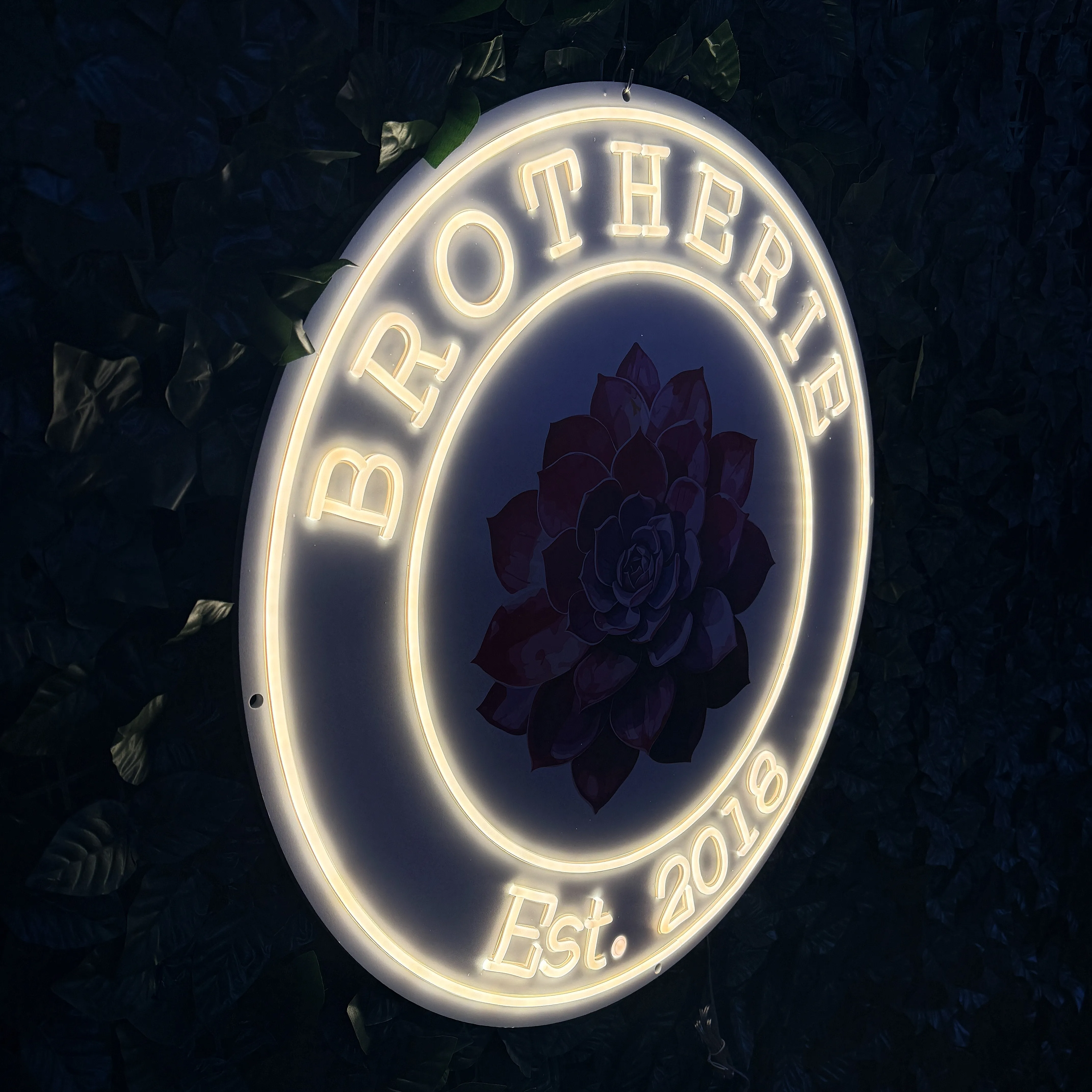 Le panneau lumineux LED « BROTHERIE Est. 2018 » avec impression intégrée crée un impact visuel clair et élégant dans n’importe quel espace. Tu l’utilises pour le branding dans des cafés, des pâtisseries, des showrooms ou des espaces commerciaux où tu veux un design propre et facile à reconnaître.