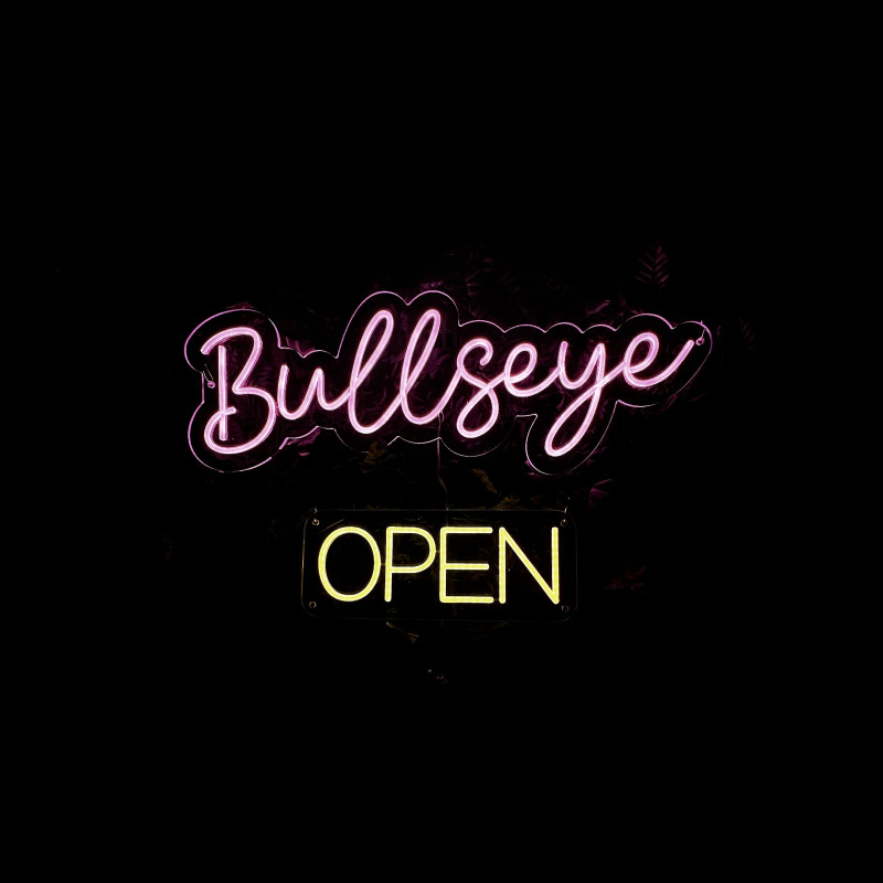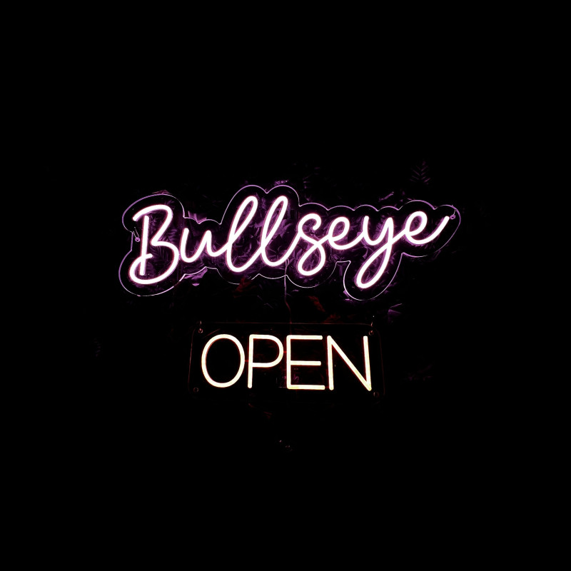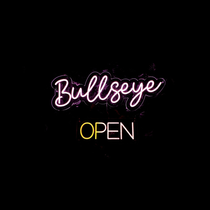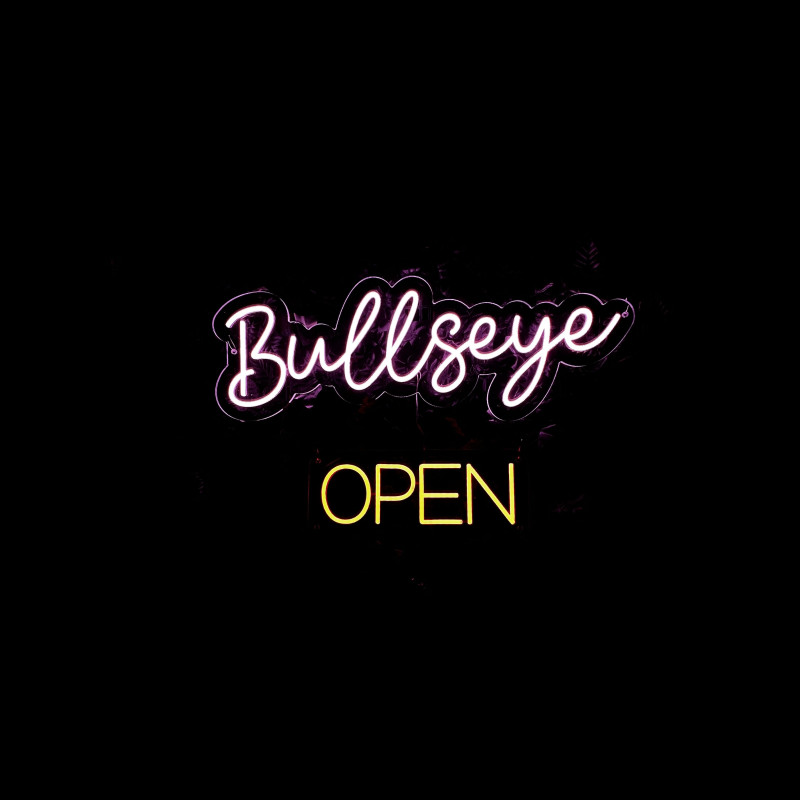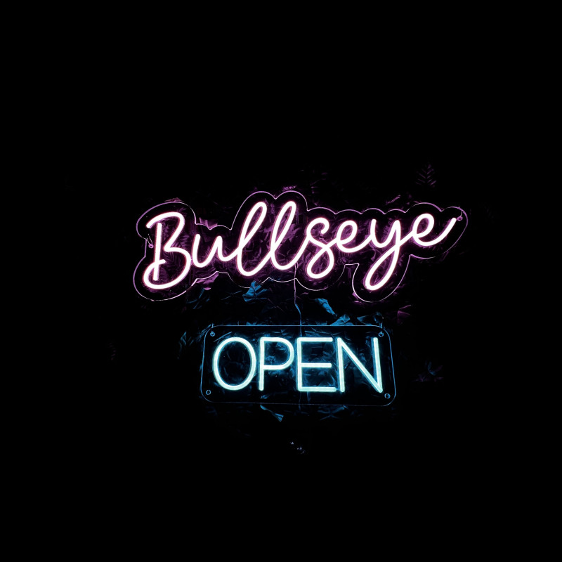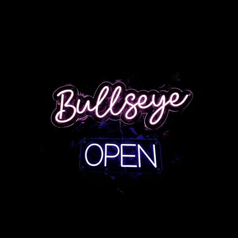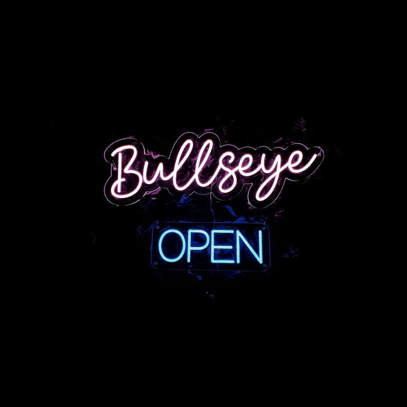 Bullseye Clothing est une marque streetwear présente en ligne et en boutique, axée sur une identité urbaine et un impact visuel en magasin. Deux enseignes complémentaires : « Bullseye » (logo — vitrine/caisse/brand wall, ancre d’identité) et « OPEN » (statut d’ouverture — porte/vitrine, améliore la conversion piétonne). Profil fin, lueur uniforme, montage propre, rendu photo/vidéo impeccable ; personnalisation facile (taille, couleurs, finitions). « OPEN » peut intégrer des modes on/off/programmables.