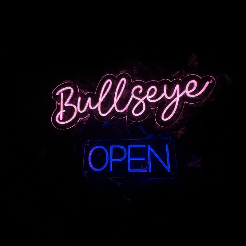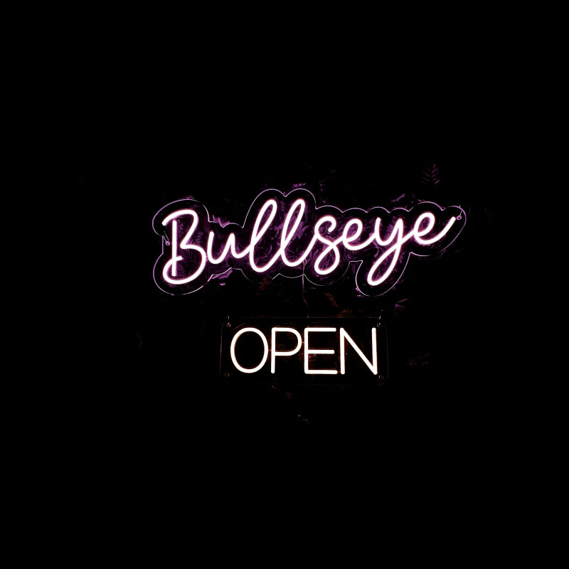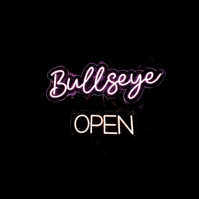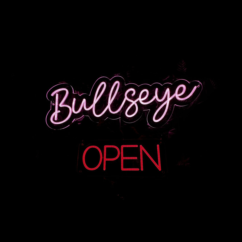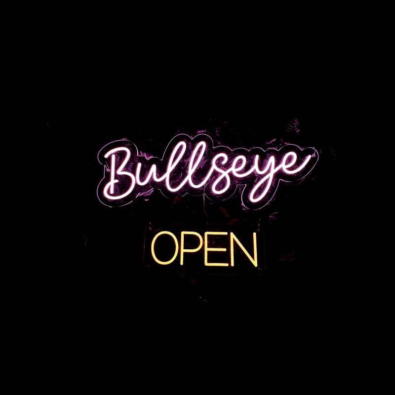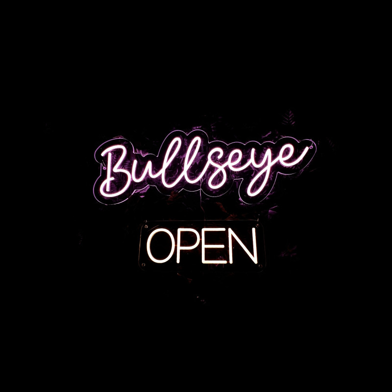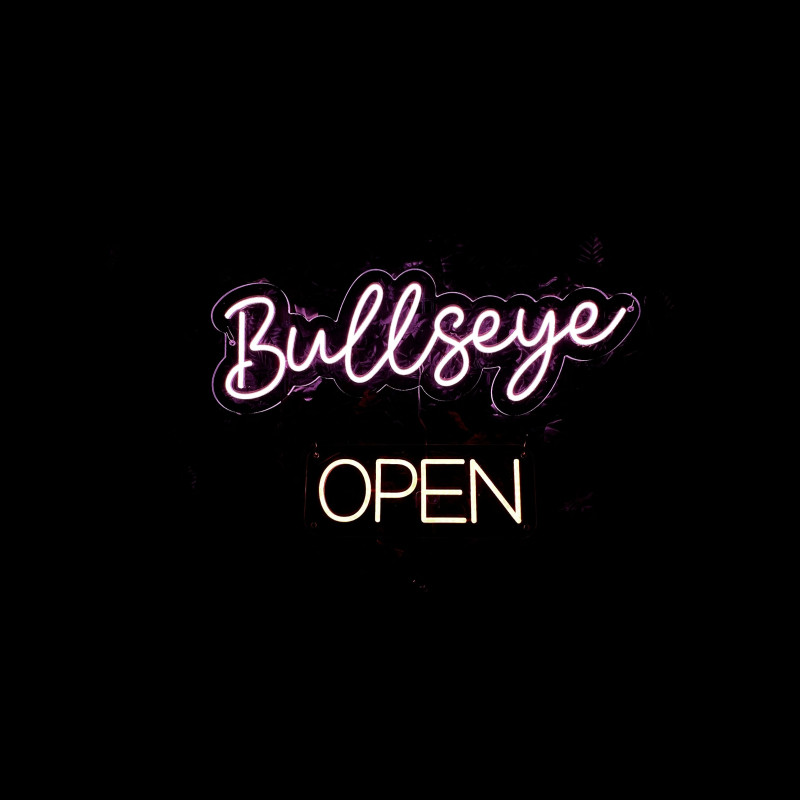Bullseye Clothing est une marque streetwear présente en ligne et en boutique, axée sur une identité urbaine et un impact visuel en magasin. Deux enseignes complémentaires : « Bullseye » (logo — vitrine/caisse/brand wall, ancre d’identité) et « OPEN » (statut d’ouverture — porte/vitrine, améliore la conversion piétonne). Profil fin, lueur uniforme, montage propre, rendu photo/vidéo impeccable ; personnalisation facile (taille, couleurs, finitions). « OPEN » peut intégrer des modes on/off/programmables.