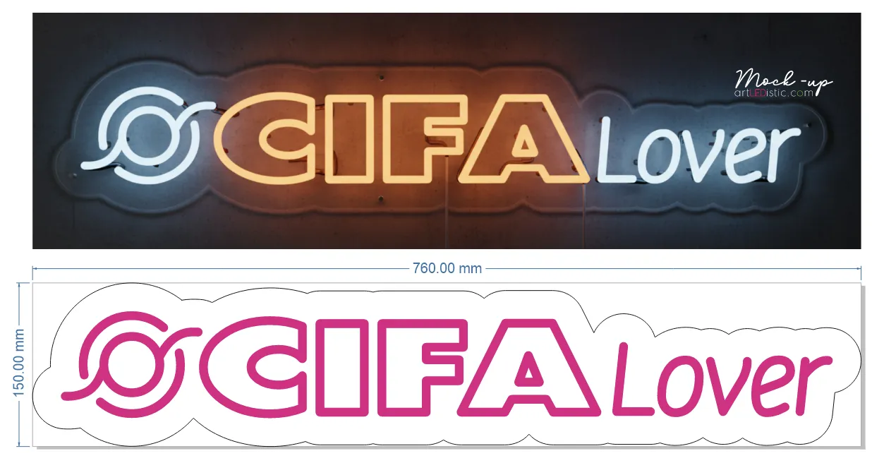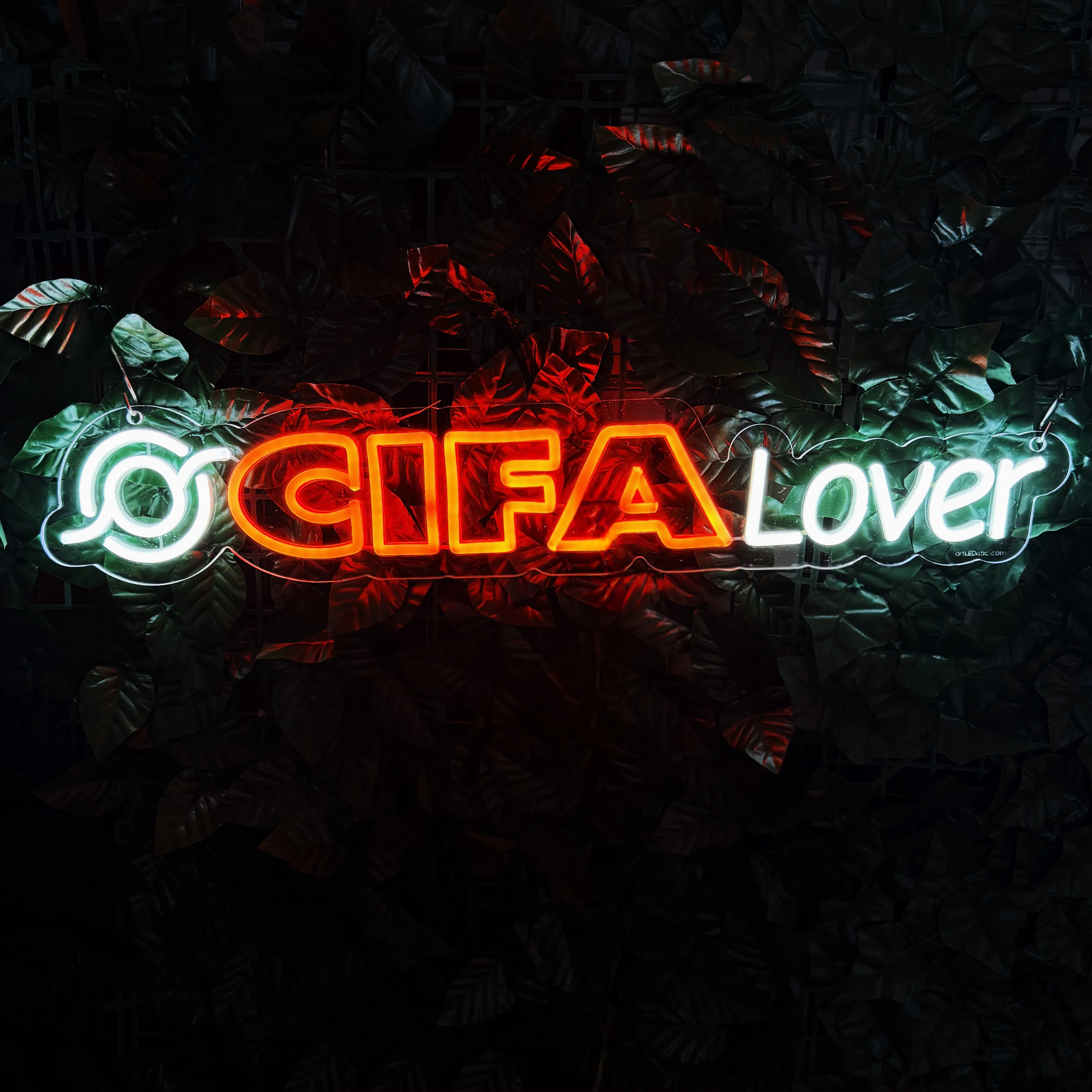 L’enseigne lumineuse LED « CIFA Lover » est conçue pour une marque qui veut un impact visuel rapide et clair. Le design combine des lettres fortes avec un symbole facile à reconnaître. Le message est direct et mémorable.