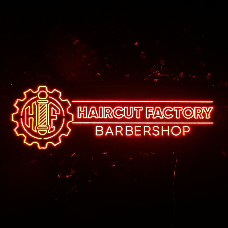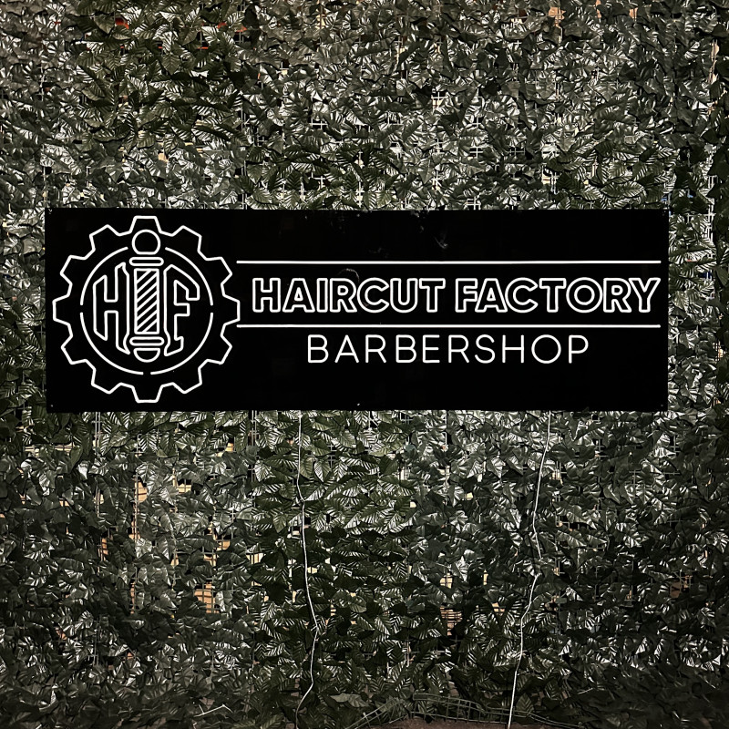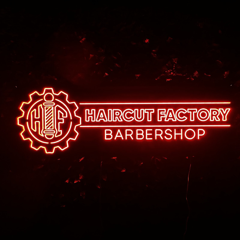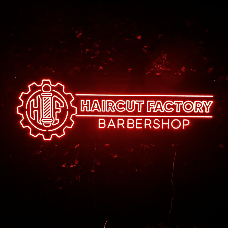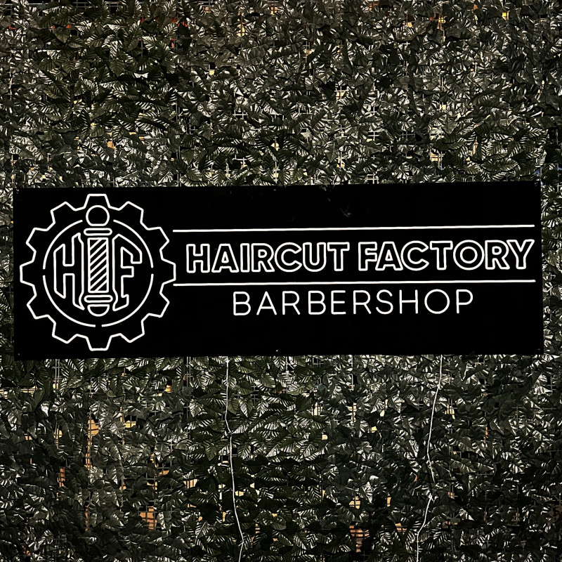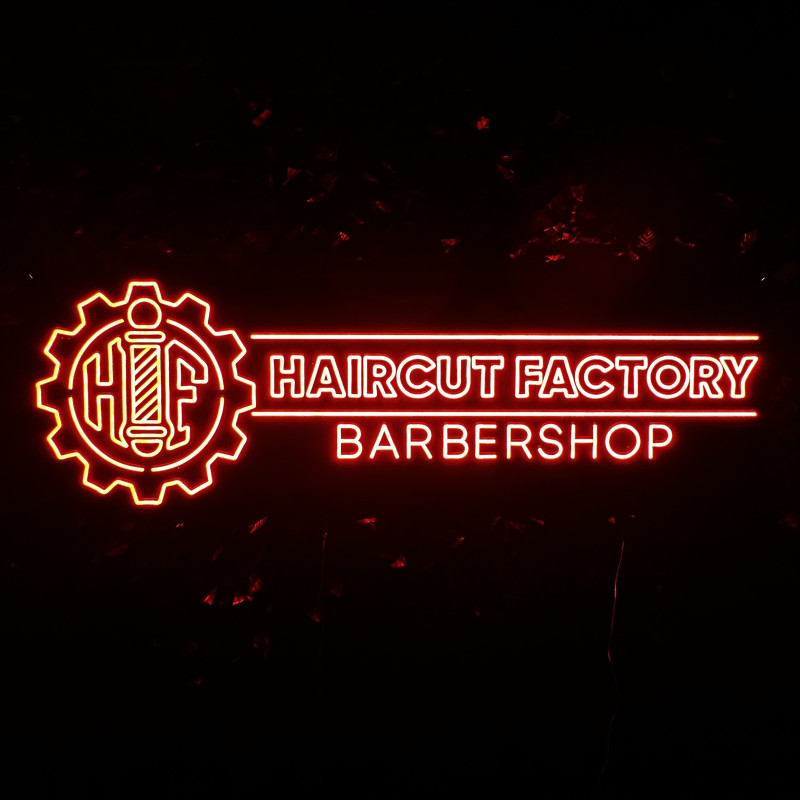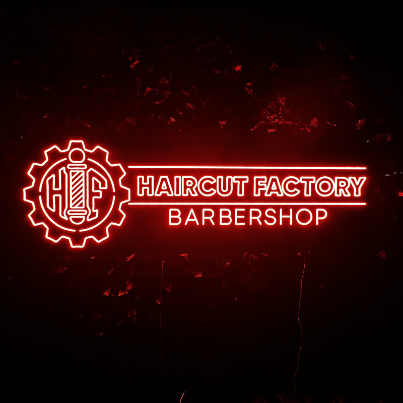 HAIRCUT FACTORY BARBERSHOP propose des coupes de précision, fades nets et soin de barbe, avec prises de rendez-vous rapides et ambiance moderne-industrielle. L’enseigne « HAIRCUT FACTORY BARBERSHOP » assure visibilité claire en façade/vitrine et branding intérieur cohérent (accueil/brand wall). Profil fin, lueur uniforme, montage propre ; personnalisation (taille, couleurs, finitions) pour un rendu photo/vidéo impeccable et un meilleur trafic en boutique.