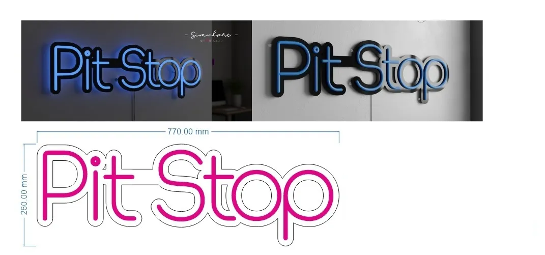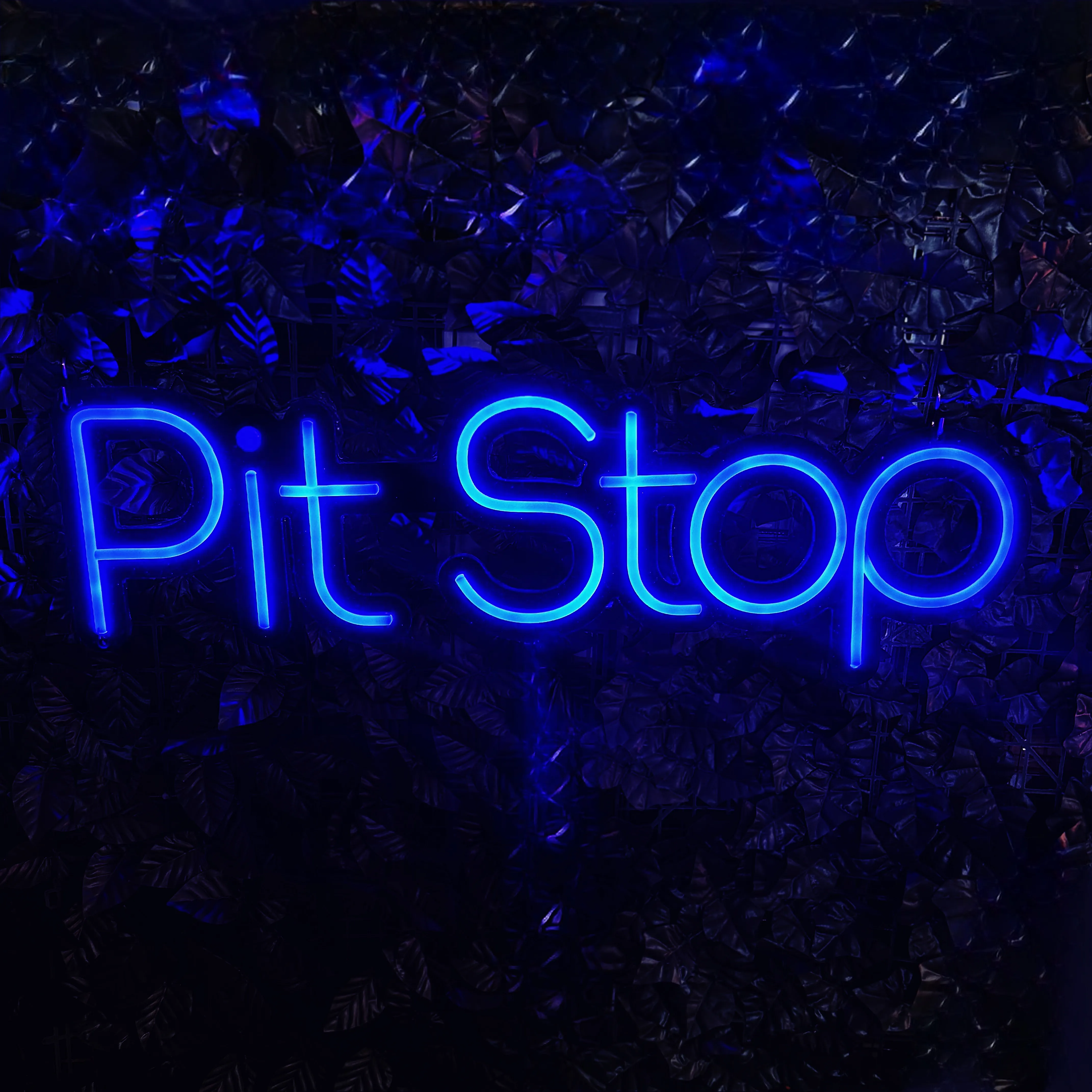 Le panneau lumineux LED « Pit Stop » est conçu pour des espaces dynamiques où la vitesse et l’énergie définissent l’expérience. Le message est court et clair. Il transmet l’idée d’un arrêt rapide, de services efficaces et de mouvement continu.
