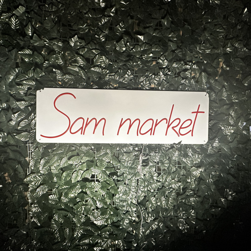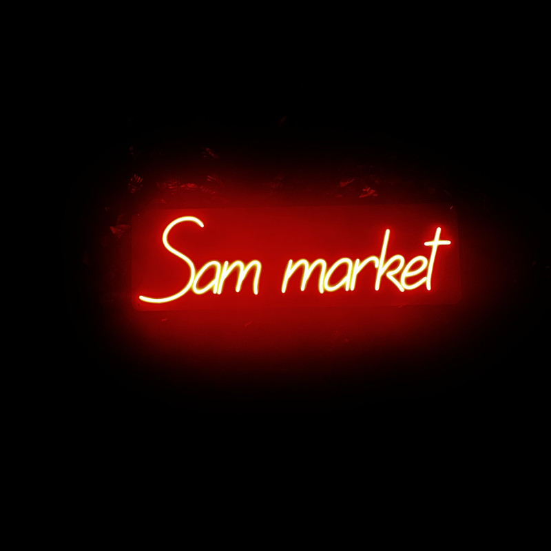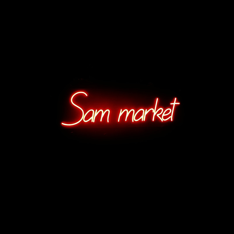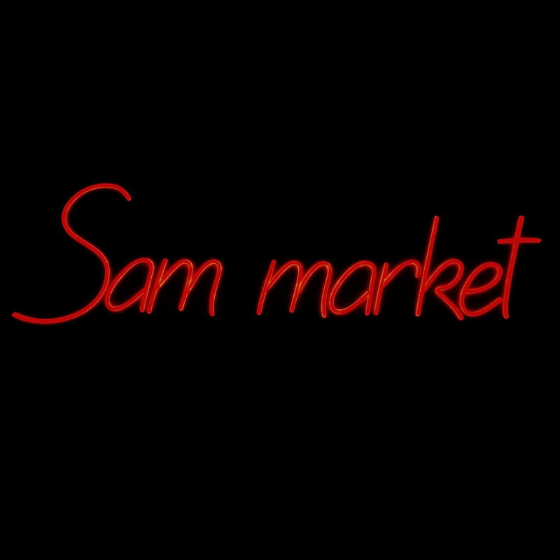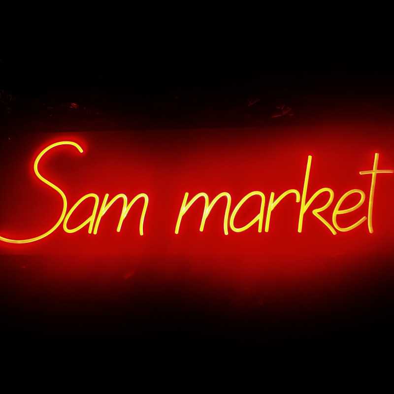 L’enseigne « Sam market » convient aux commerces de proximité, minimarkets et retail mixte — idéale en vitrine, à l’entrée ou sur un brand wall. Profil fin, lueur uniforme, montage propre ; rendu photo/vidéo impeccable. Personnalisation rapide (taille, couleurs, finitions, typo) et adaptation aisée à d’autres noms/logos.
