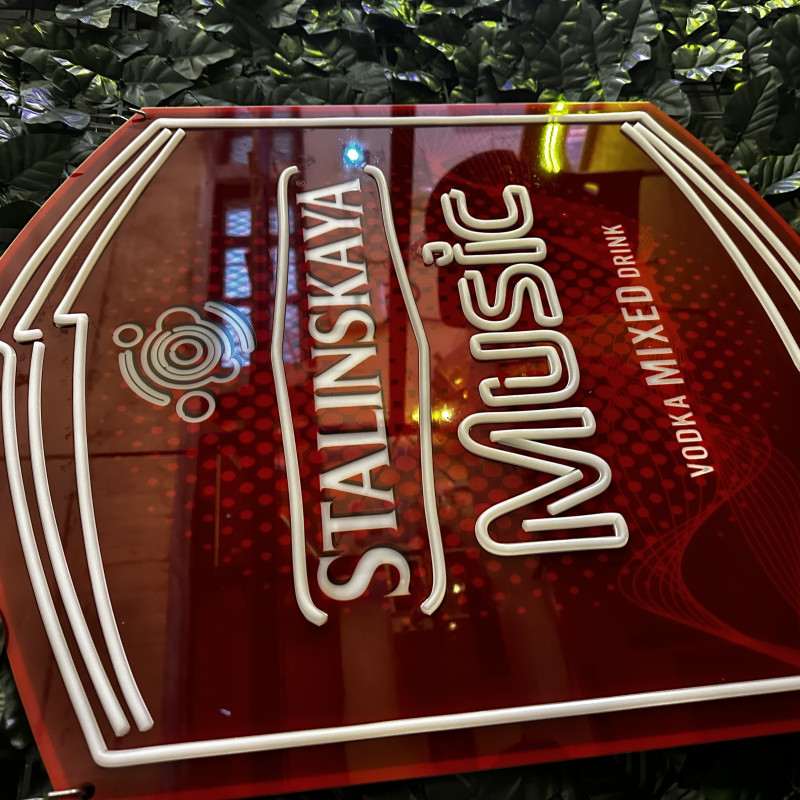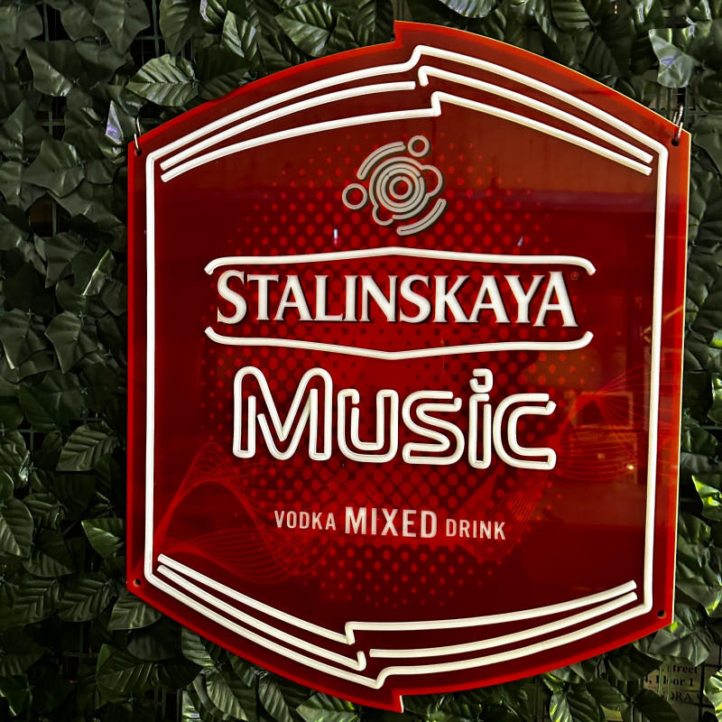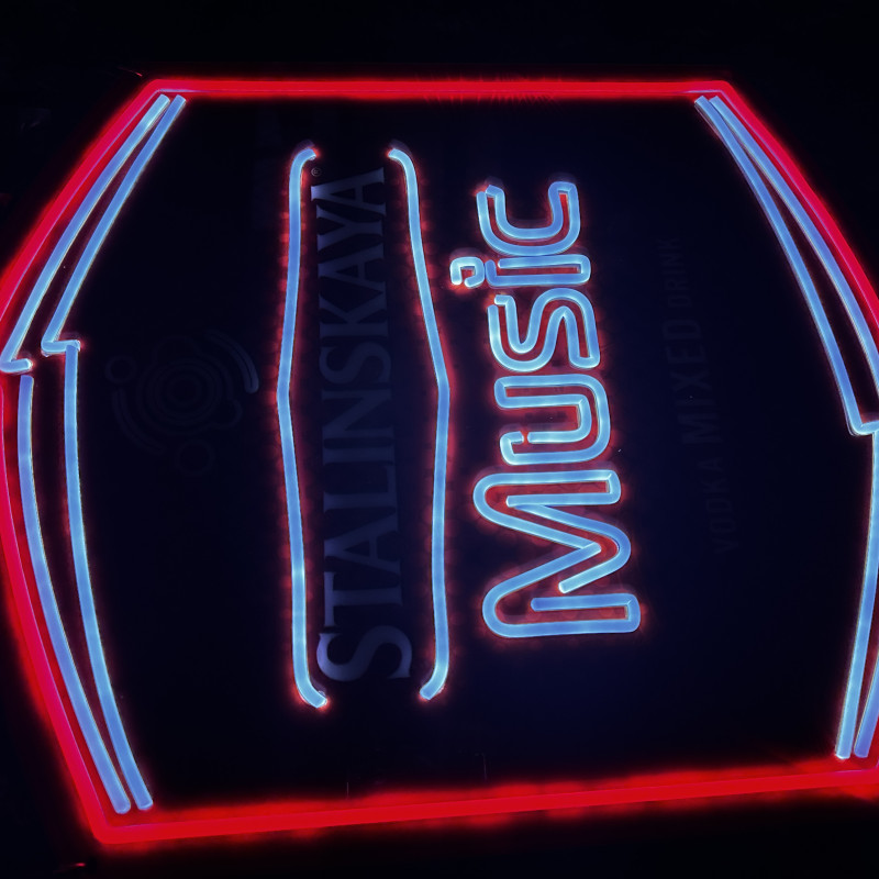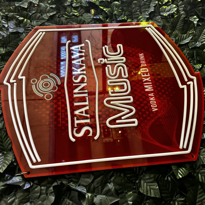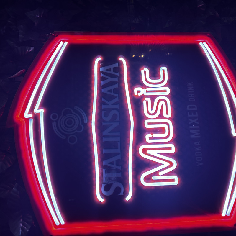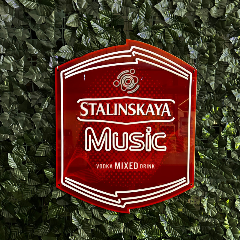 Intellect est une agence de création et de production spécialisée dans les activations de marque. Nous avons réalisé une série d’enseignes lumineuses STALINSKAYA Music comme ancres visuelles pour bar, scène, corner photo et points de service. Profil fin, lueur uniforme, pose propre, excellent rendu photo/vidéo ; personnalisables en tailles, couleurs et finitions selon le setup de l’événement.