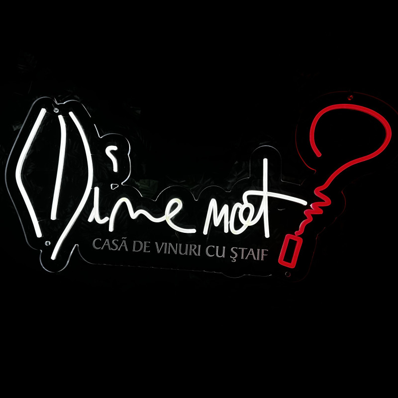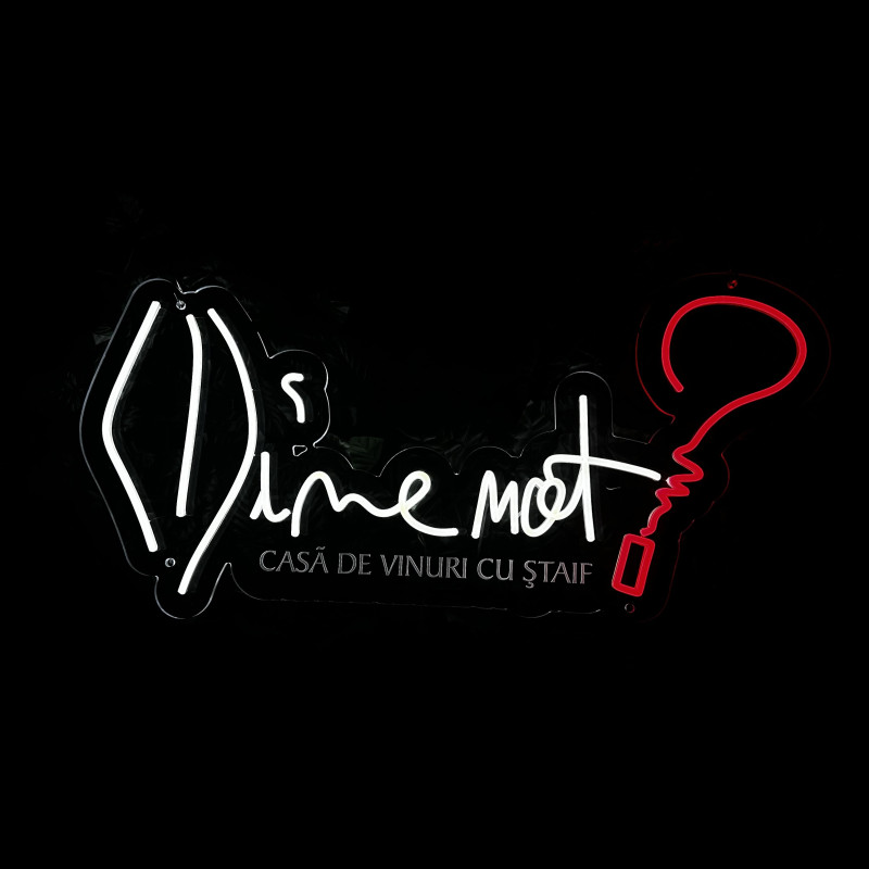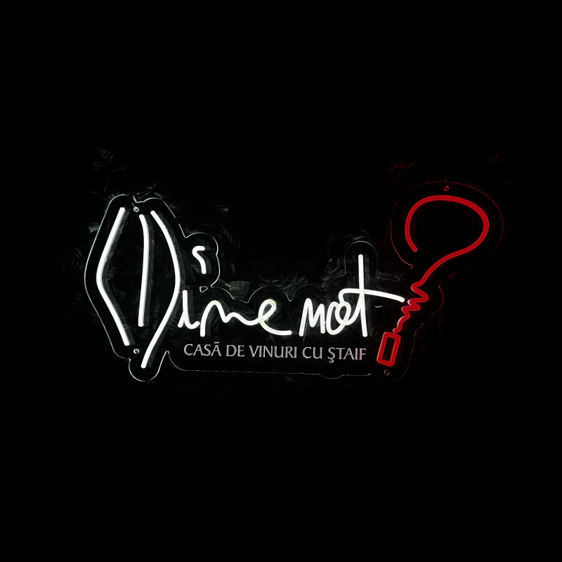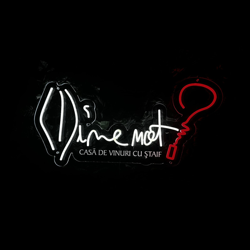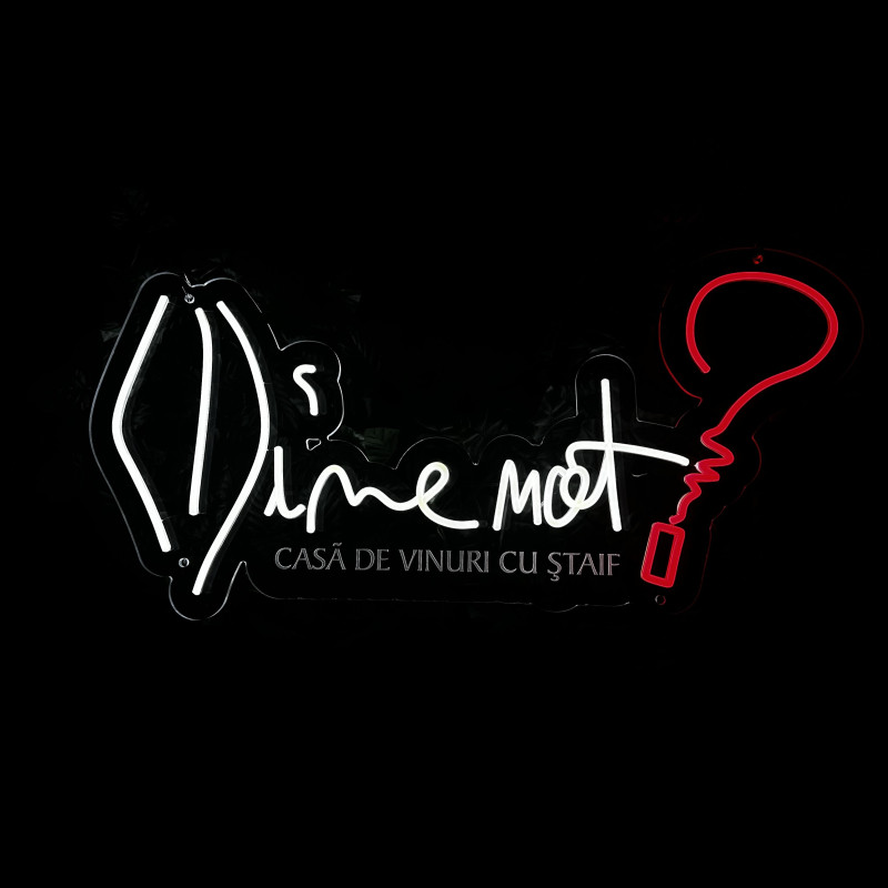 Wine not? est une marque de vins axée sur des sélections curatoriales, des cadeaux et des expériences de dégustation — active en ligne et sur site. L’enseigne « Wine not? » est pensée pour façades, back-bars et corners photo : profil fin, lueur uniforme, montage propre, rendu photo/vidéo impeccable. Personnalisation (taille, couleurs, finitions) selon l’identité du lieu.
