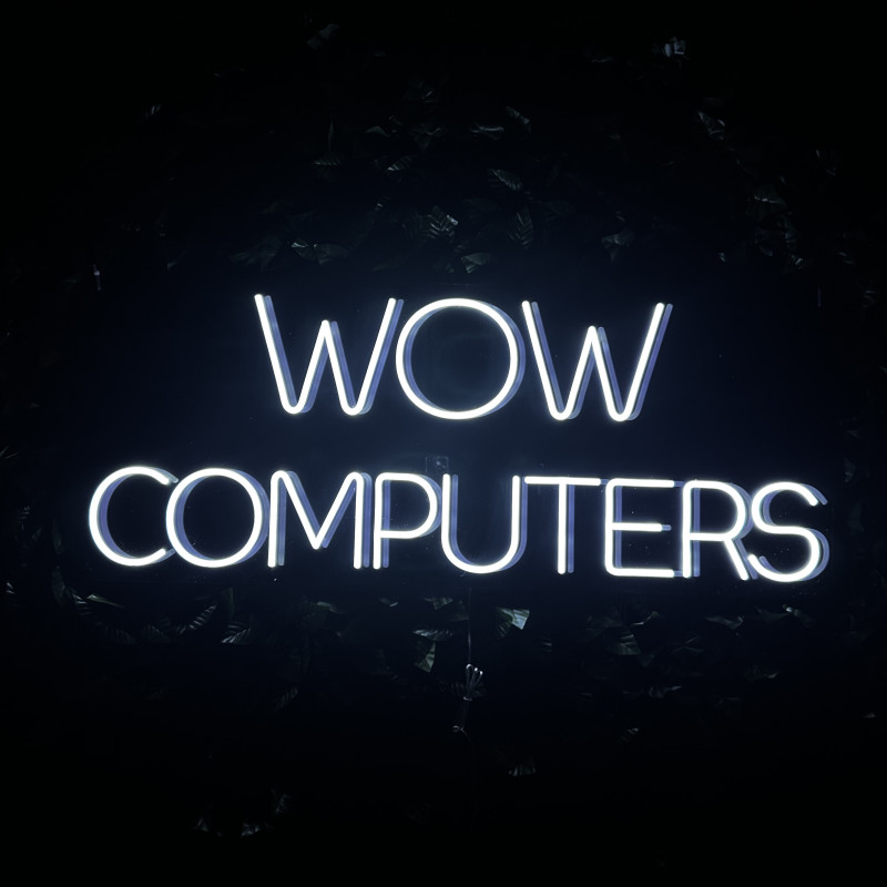 Nous avons réalisé l’enseigne « WOW COMPUTERS » pour une visibilité claire en façade/vitrine et un branding intérieur cohérent (accueil/brand wall). Profil fin, lueur uniforme, montage propre — rendu photo/vidéo impeccable. Personnalisation (taille, couleurs, finitions) selon l’identité du magasin.