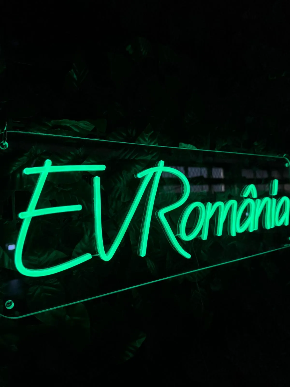 artLEDistic a realizat semnul luminos personalizat EVRomania, creat pentru un brand orientat spre tehnologie și mobilitate electrică. Designul simplu și culoarea verde transmit energie, inovație și sustenabilitate.