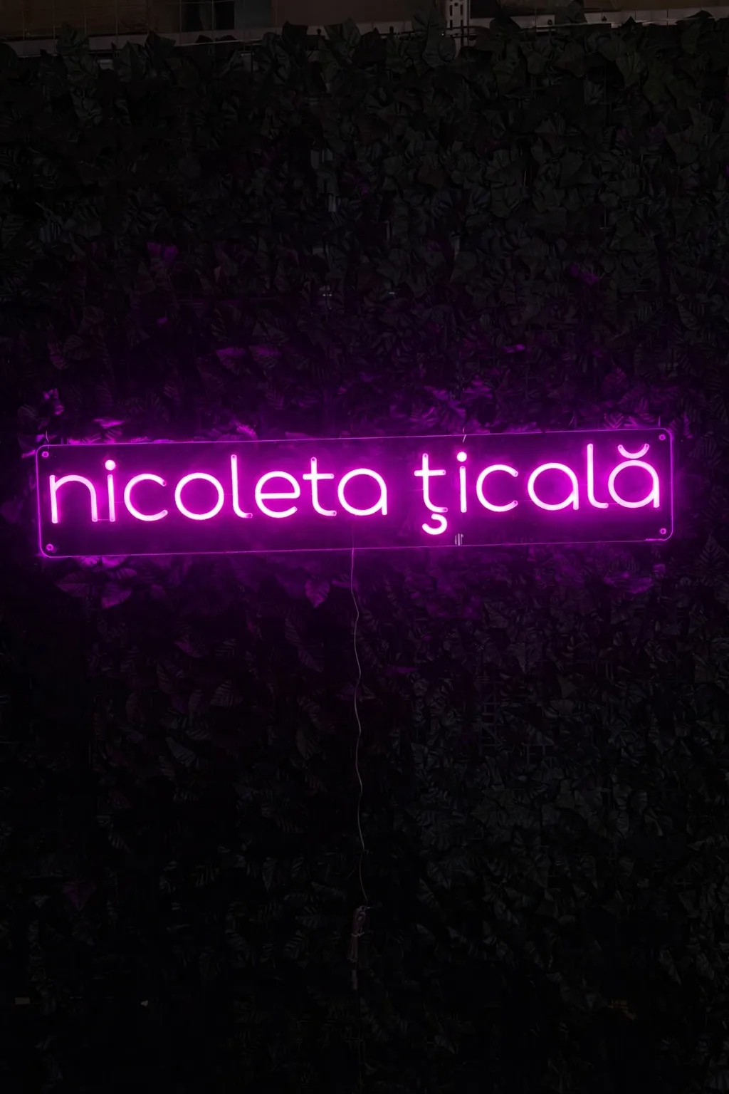 artLEDistic a realizat semnul luminos personalizat Nicoleta Țicală, creat pentru branding personal într-un spațiu modern. Designul simplu și culoarea magenta oferă vizibilitate și impact vizual.