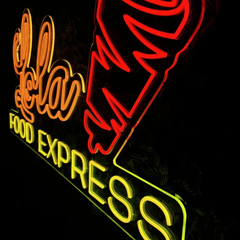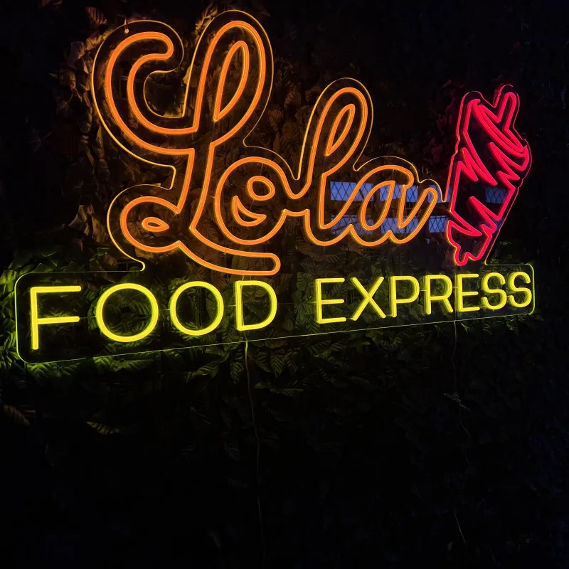 Semnul LED personalizat Lola Food Express este realizat de artLEDistic pentru Lola Food Express din Constanța, un fast-food care oferă preparate rapide precum pizza, shaorma, panini și alte produse de tip street-food, disponibile pentru servire rapidă sau livrare. Iluminarea este realizată cu bandă LED cu cipuri în mai multe culori, roșu, magenta, verde, galben lemon și galben înflăcărat, pentru un efect vizual puternic și atractiv. Semnele sunt decupate regulat sau neregulat la forma graficii și realizate pe bază din plexiglas transparent.