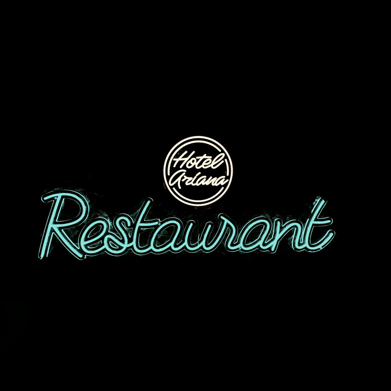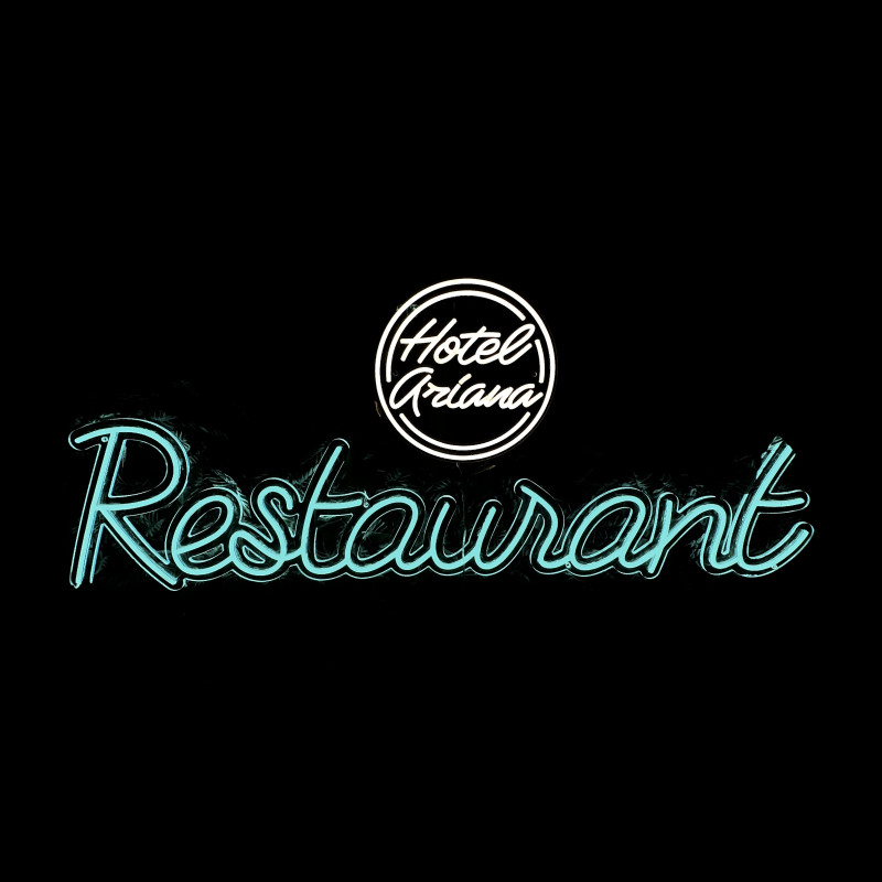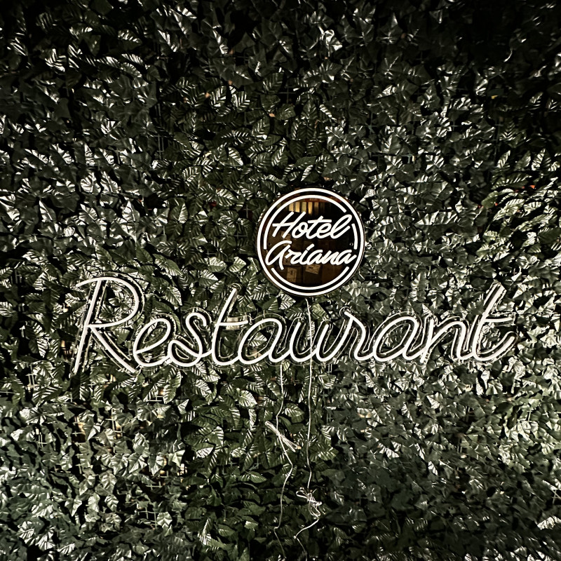 All’interno di Hotel Ariana, l’insegna “Restaurant” guida gli ospiti e valorizza l’ingresso/l’area di servizio. Profilo sottile, luce uniforme, montaggio pulito — ben visibile lungo il flusso degli ospiti e fotogenica per la comunicazione. Personalizzazione (dimensioni, colori, finiture) in linea con il design dell’hotel.