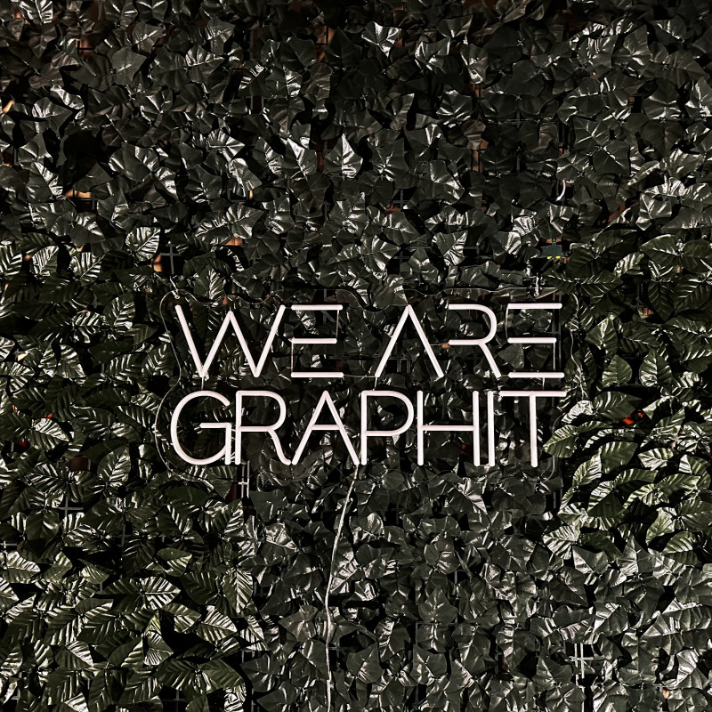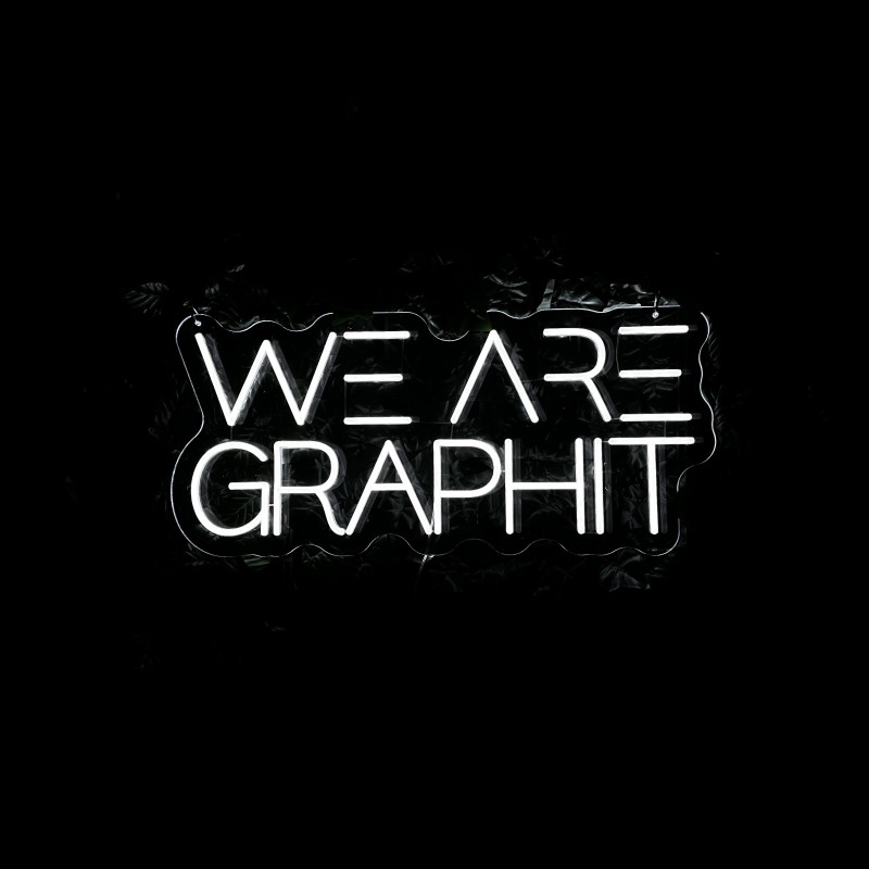 Progettata per definire lo spazio e amplificare la storia visiva del brand. “we are graphit” funziona su facciata, reception, brand wall o photo corner — visibile, fotogenica, facile da installare. Struttura sottile, luce uniforme, montaggio pulito. Personalizzazione rapida di misure, font, colori e finiture o adattamento ad altre parole/loghi.