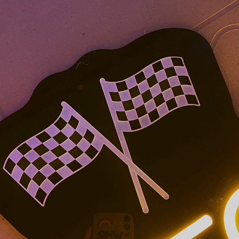 Semnul luminos "ASA Performance UK" este realizat pe un suport elegant din plexiglas negru, conferind un aspect modern și rafinat. Gravura distinctivă include două steaguri de raliu, subliniind pasiunea și angajamentul pentru performanță și viteză.