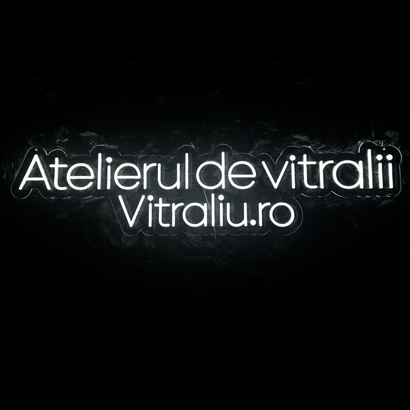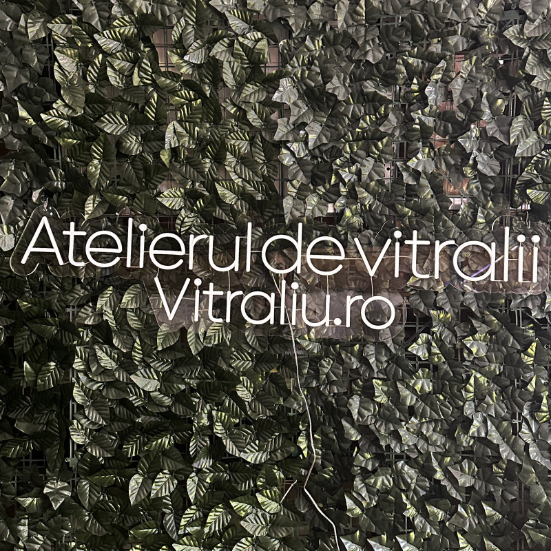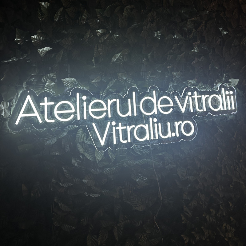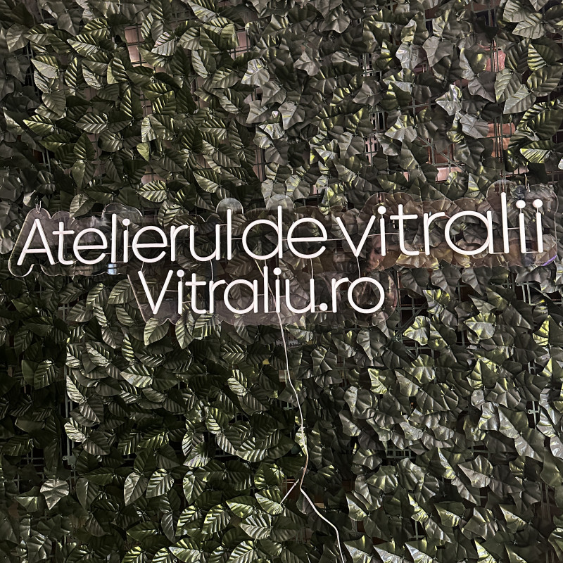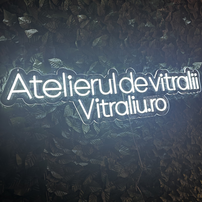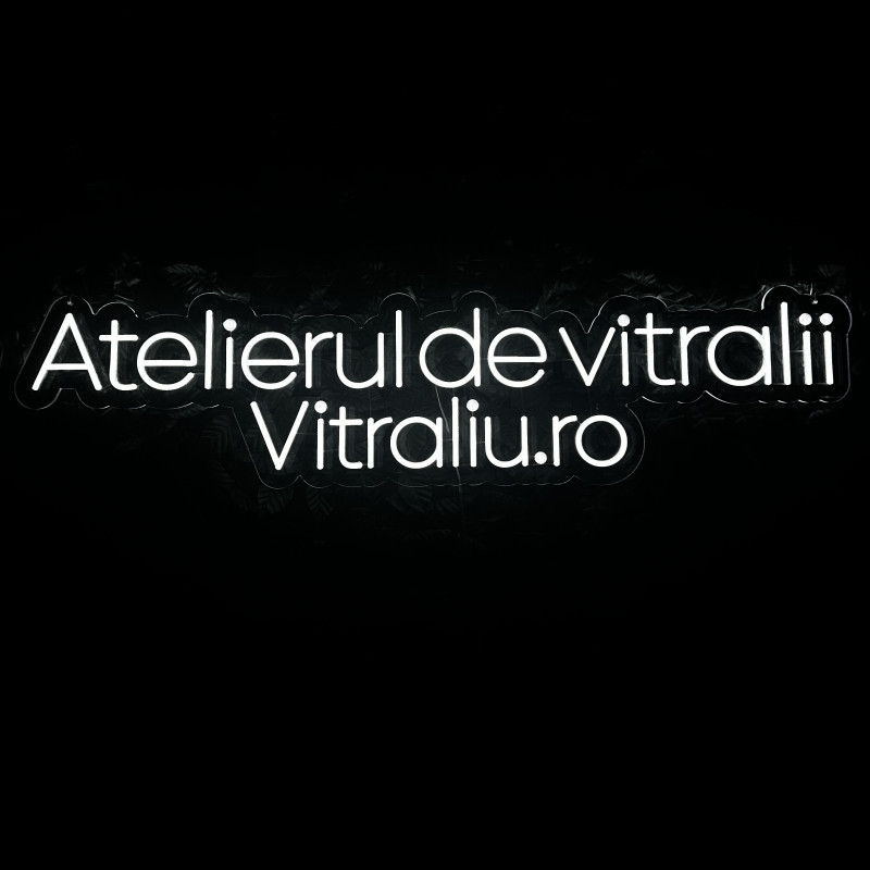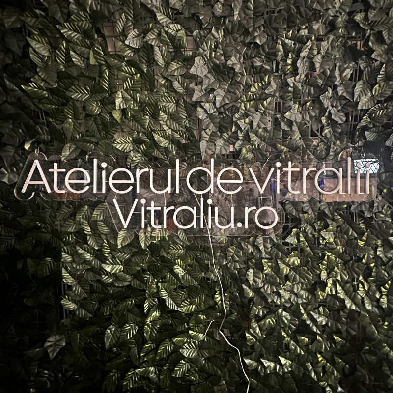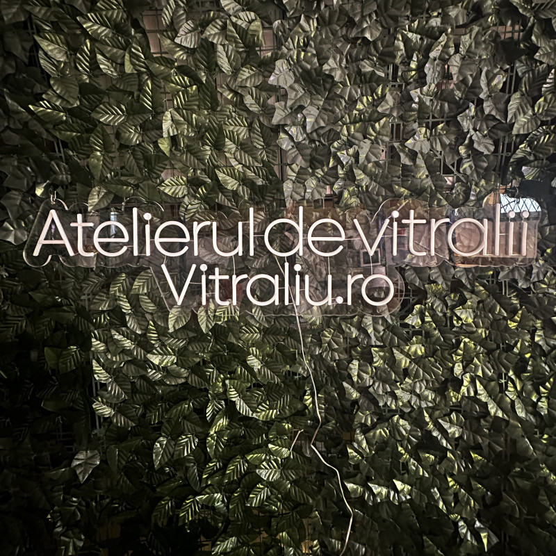 Pentru ei am creat semnul luminos „Atelierul de vitralii — Vitraliu.ro”, gândit ca ancoră de identitate pentru fațadă, recepție, showroom sau brand wall: profil subțire, lumină uniformă, montaj curat și personalizare rapidă (dimensiuni, culori, finisaje) — fotogenic în foto/video și coerent cu estetica sticlei artistice.