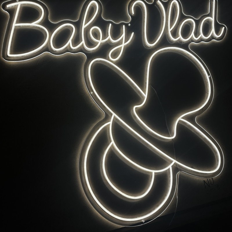 Acest proiect unic combină arta vizuală cu tehnologia luminii pentru a crea o piesă decorativă personalizată: un semn luminos LED cu textul "Baby Vlad". Fiecare detaliu este realizat manual, cu atenție la formă, culoare și iluminare ambientală, pentru a transmite un sentiment de căldură, tandrețe și rafinament. Această instalație devine o piesă centrală perfectă pentru camera unui bebeluș, dar și un cadou memorabil cu valoare emoțională și estetică deosebită.