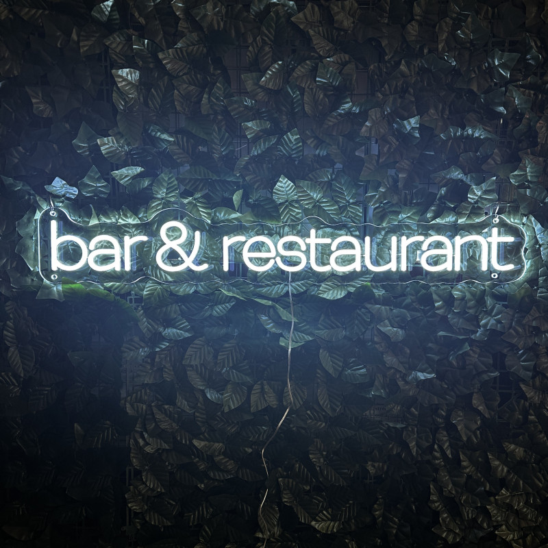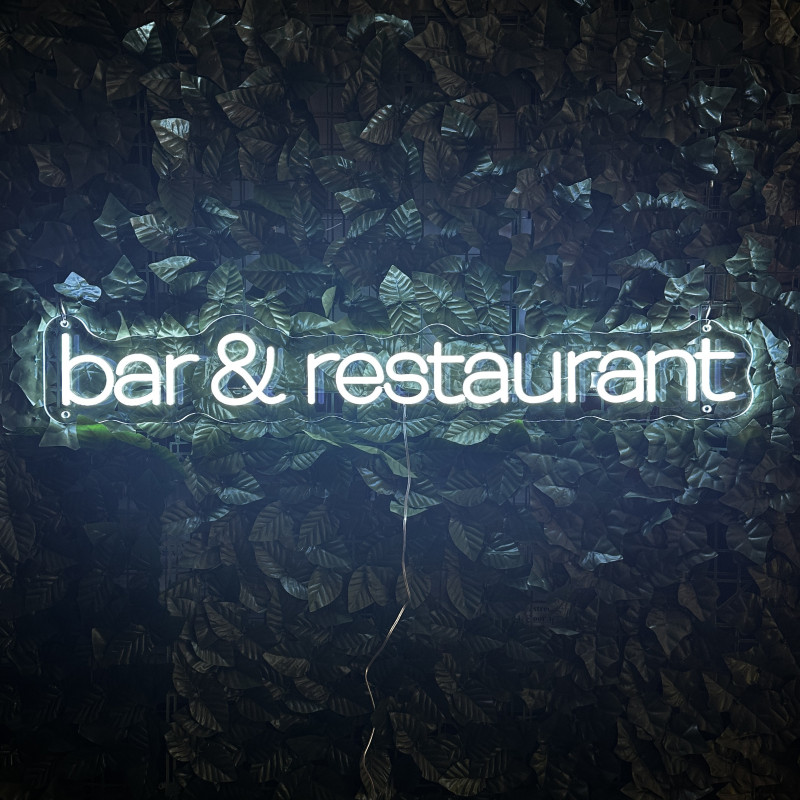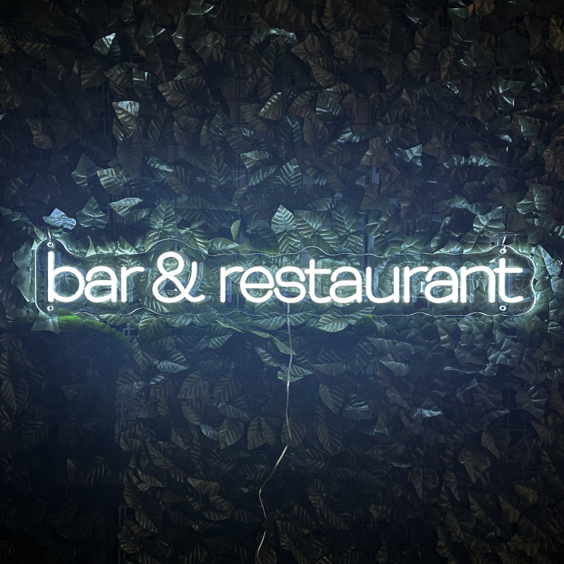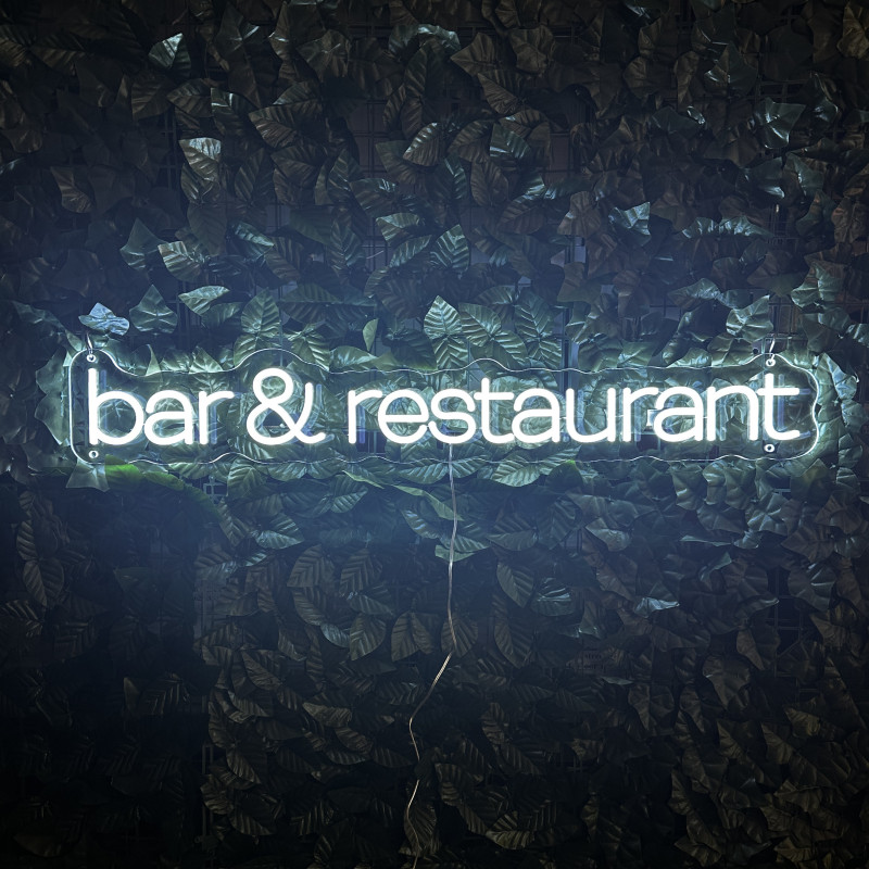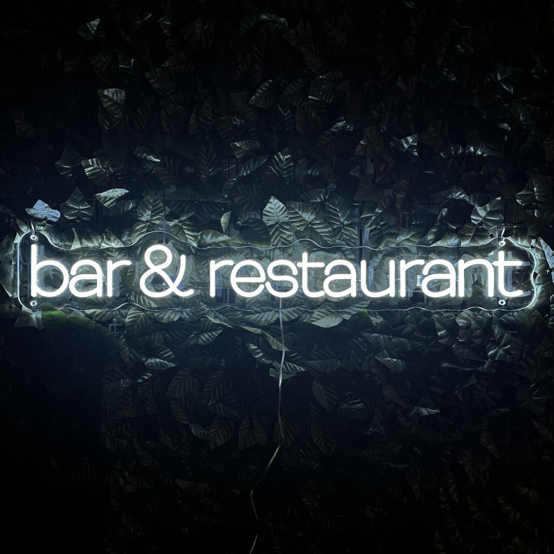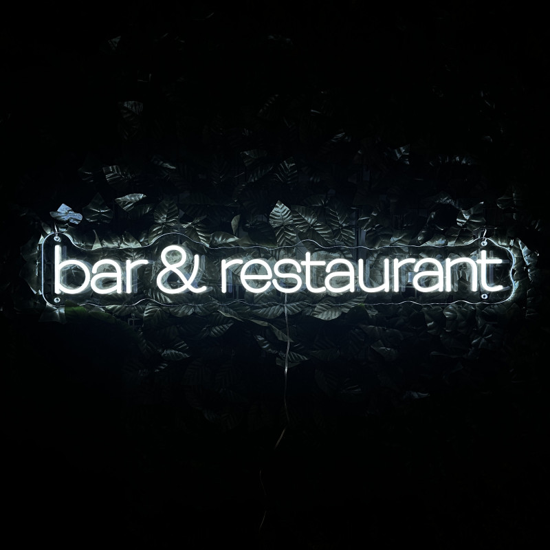 Semnul luminos „bar & restaurant” este o ancoră de identitate pentru fațadă, bar, zonă de servire sau brand wall. Profil subțire, lumină uniformă, montaj curat; fotogenic în foto/video. Personalizabil rapid (dimensiuni, culori, finisaje, font) pentru a se potrivi cu estetica oricărui local.