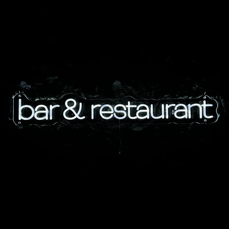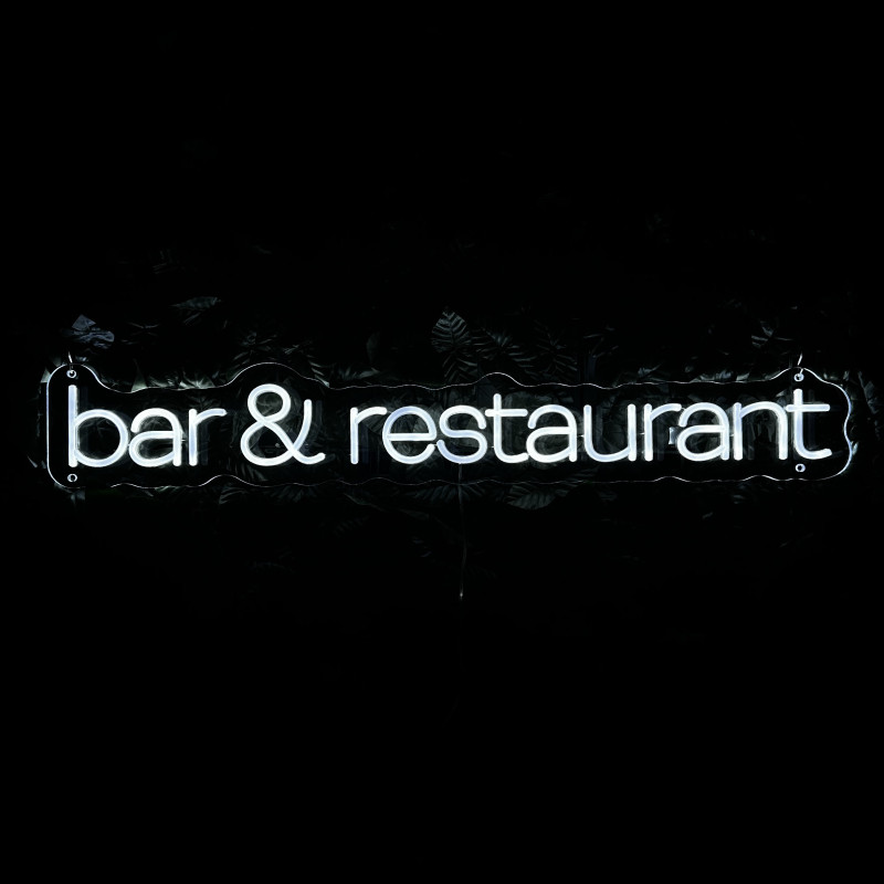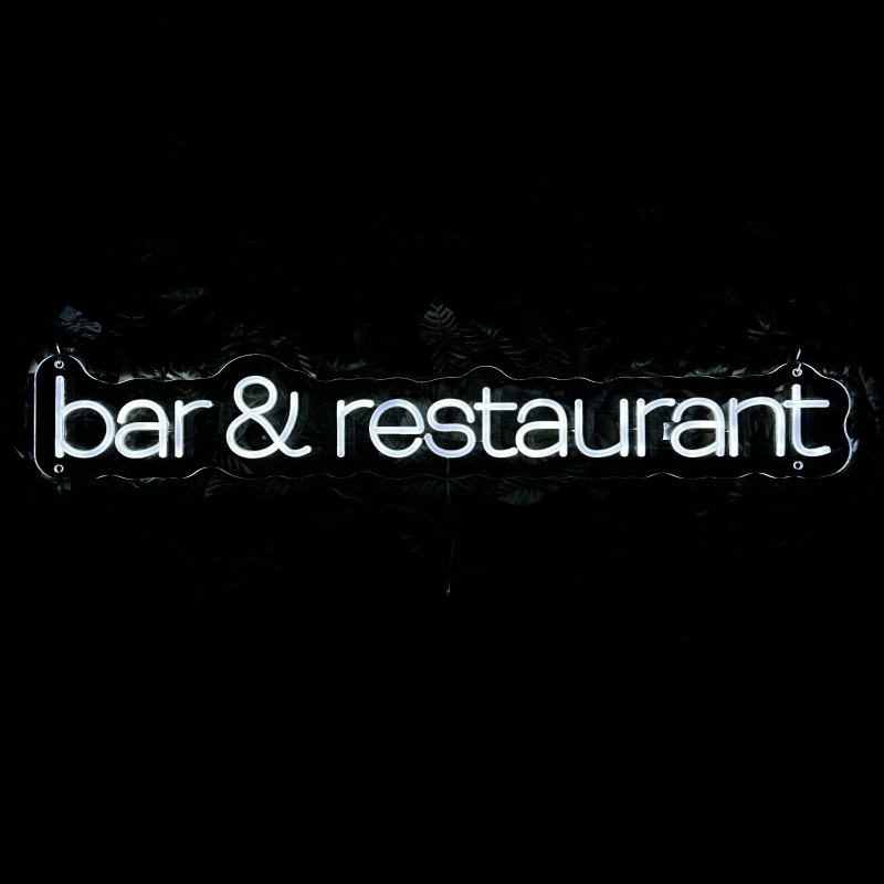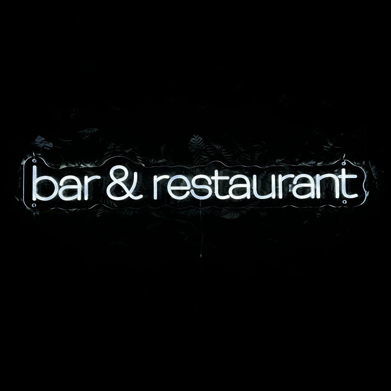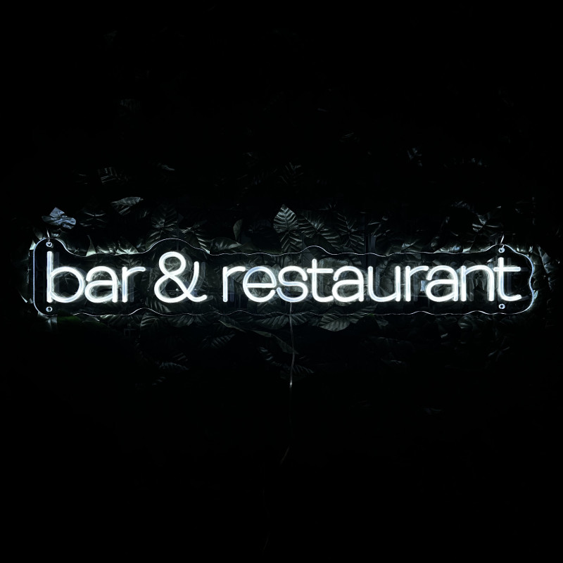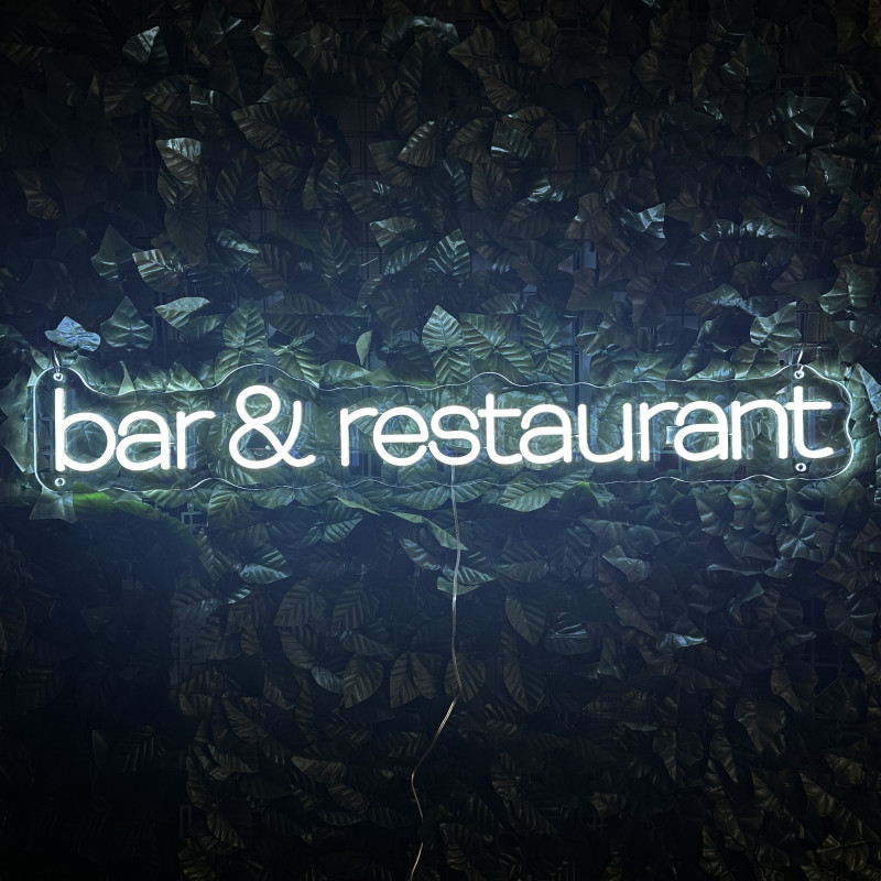 Semnul luminos „bar & restaurant” este o ancoră de identitate pentru fațadă, bar, zonă de servire sau brand wall. Profil subțire, lumină uniformă, montaj curat; fotogenic în foto/video. Personalizabil rapid (dimensiuni, culori, finisaje, font) pentru a se potrivi cu estetica oricărui local.