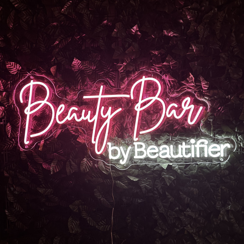 Pentru ei am creat semnul luminos „Beauty Bar by Beautifier”, gândit ca ancoră vizuală pentru vitrină, recepție, insulă retail sau photo spot—profil subțire, lumină uniformă, montaj curat. Piesa este ușor de personalizat (dimensiuni, culori, finisaje, font) și fotogenică în foto/video pentru content și evenimente.