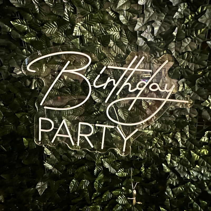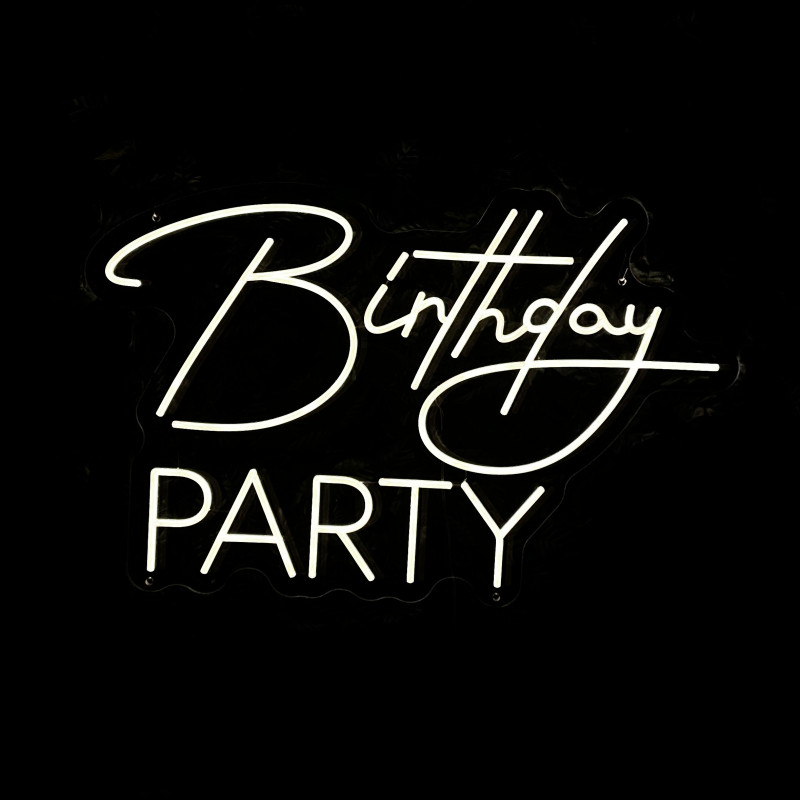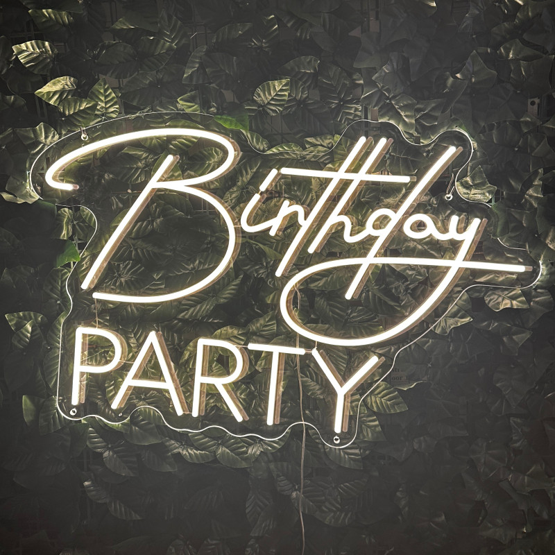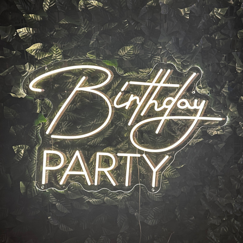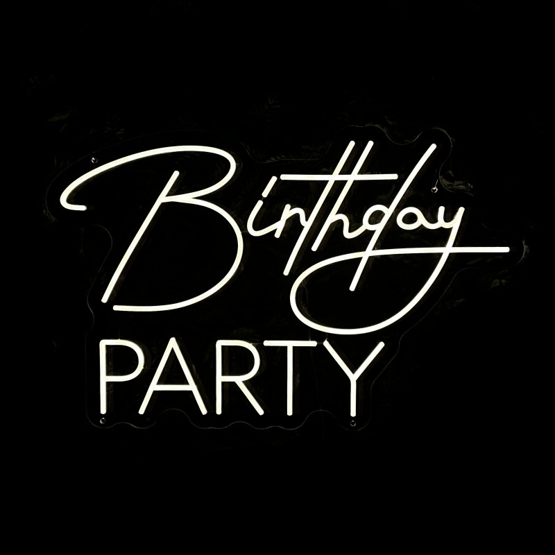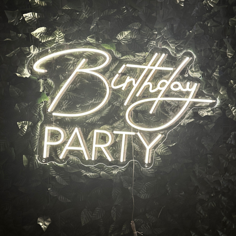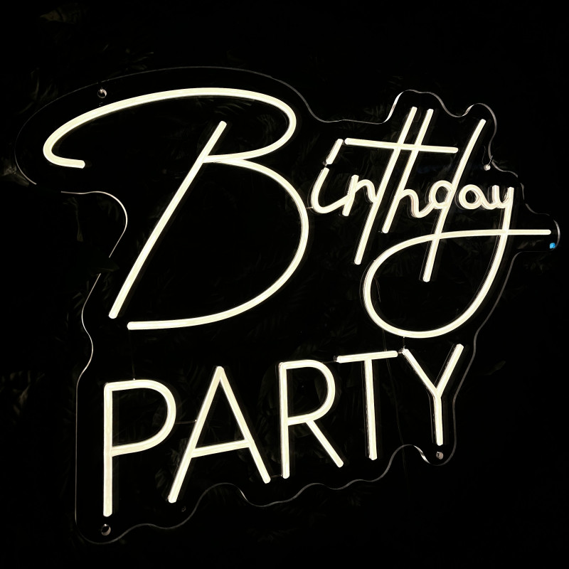 Semnul luminos „Birthday Party” este creat ca punct de atracție pentru photo corner, candy bar, scenă, recepție sau brand wall. Profil subțire, lumină uniformă, montaj curat; fotogenic în foto/video și ușor de personalizat (dimensiuni, culori, finisaje, font) pentru petreceri acasă, în local sau venue.