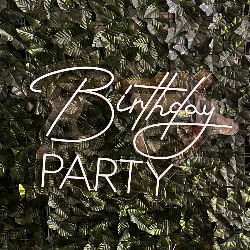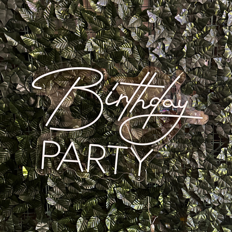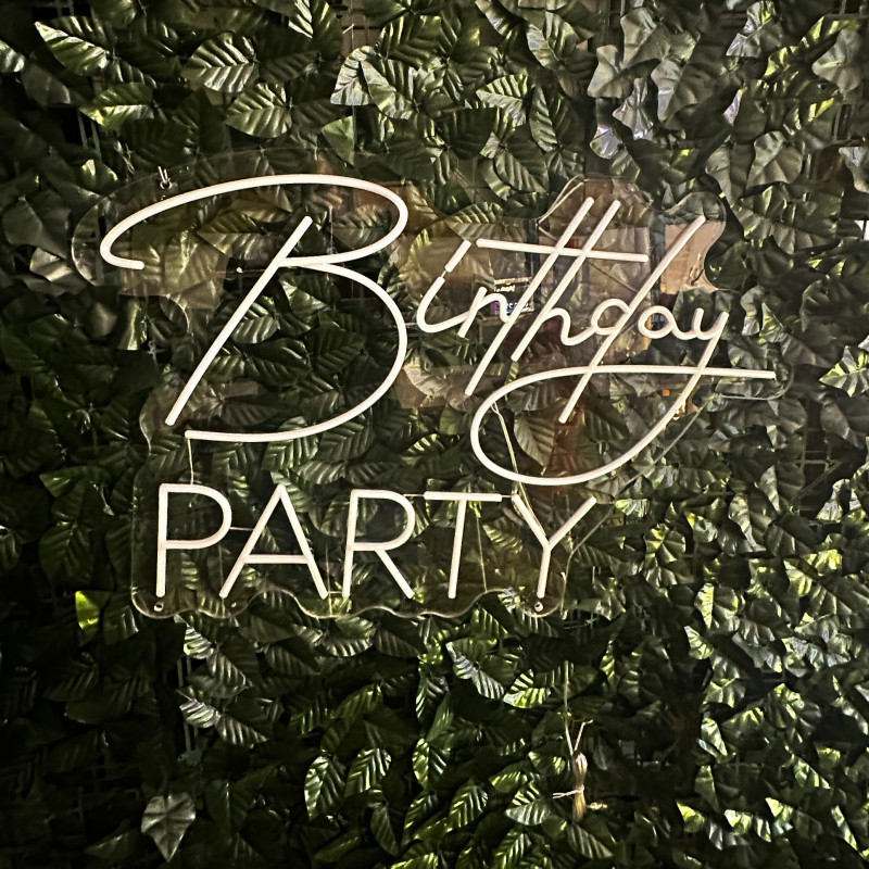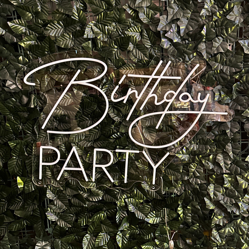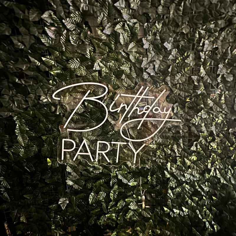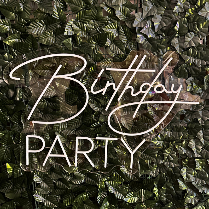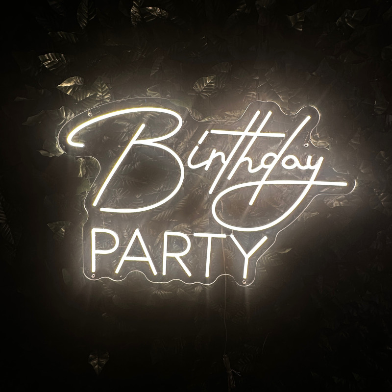 Semnul luminos „Birthday Party” este creat ca punct de atracție pentru photo corner, candy bar, scenă, recepție sau brand wall. Profil subțire, lumină uniformă, montaj curat; fotogenic în foto/video și ușor de personalizat (dimensiuni, culori, finisaje, font) pentru petreceri acasă, în local sau venue.