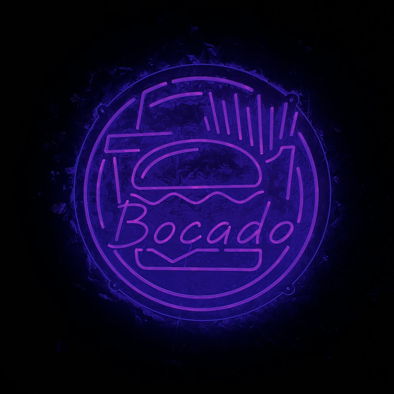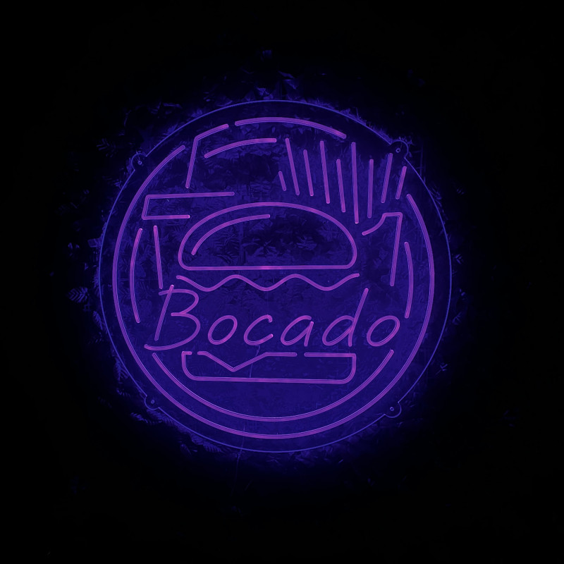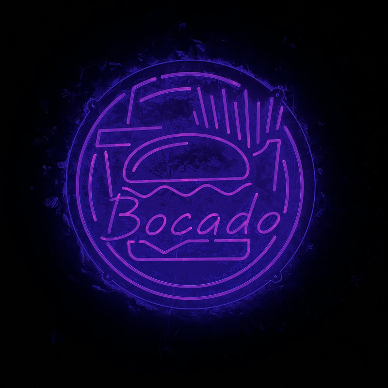 Pentru ei am realizat semnul luminos „Bocado”, gândit ca ancoră de identitate pentru vitrină, tejghea, zonă foto/brand wall — lumină uniformă, profil subțire, montaj curat și personalizare rapidă (dimensiuni, culori, finisaje) pentru integrare firească în decorul locației.