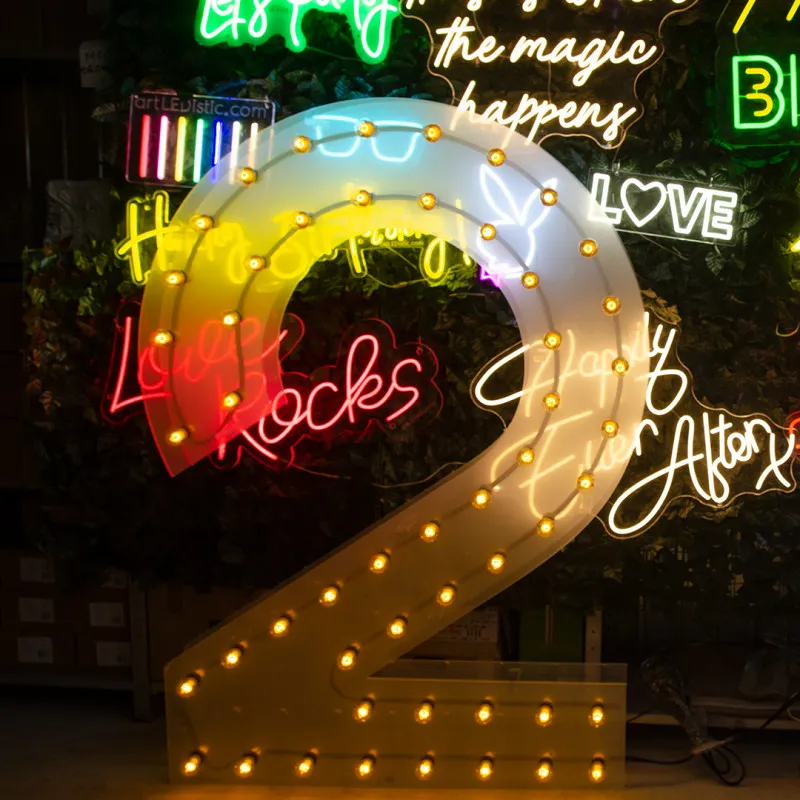 Bucurați-vă de eleganță și creativitate cu cifra 2 personalizată, realizată cu măiestrie de echipa noastră. Acest semn luminos distinctiv reprezintă perfecțiunea și atenția la detalii care ne caracterizează munca.