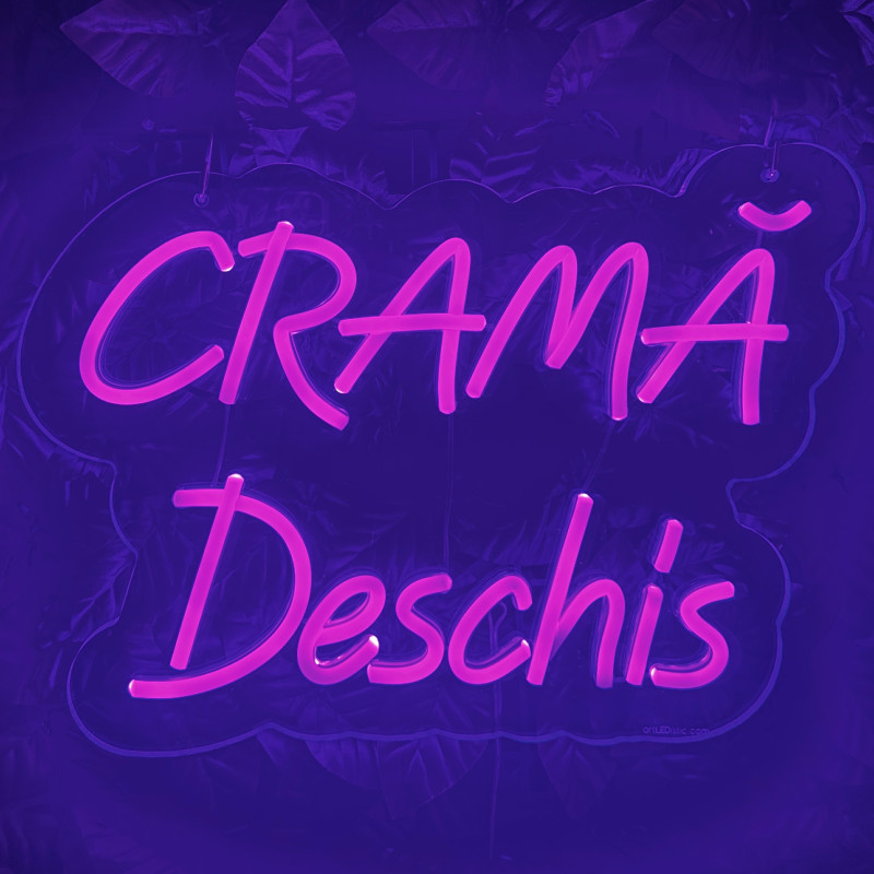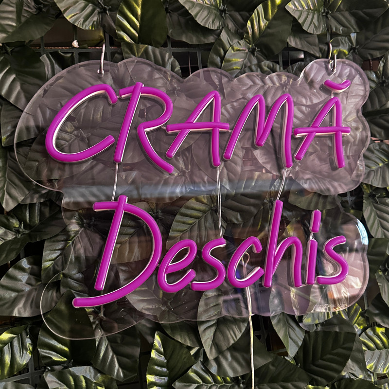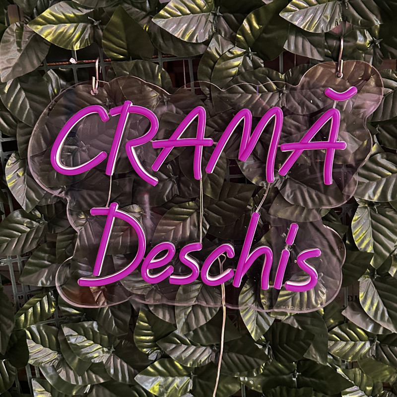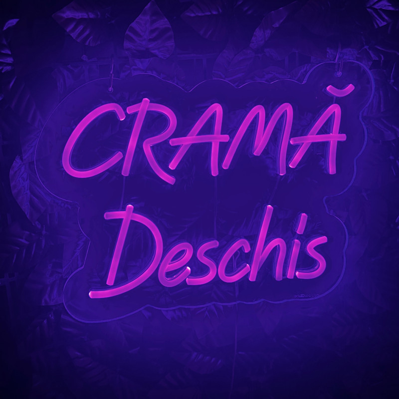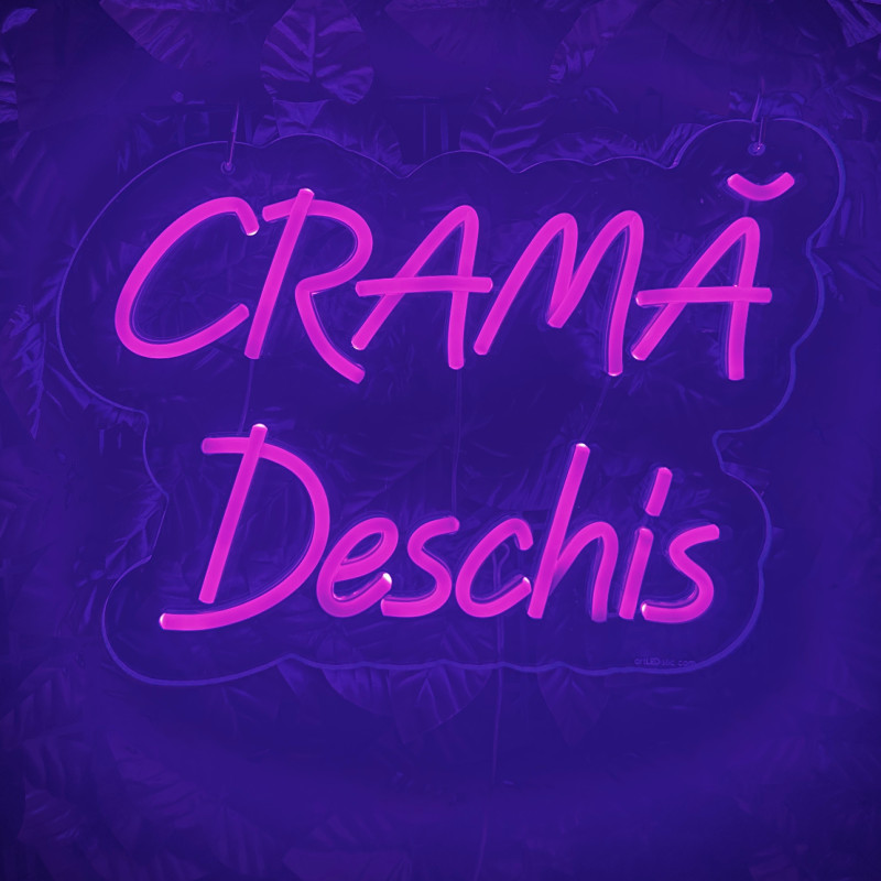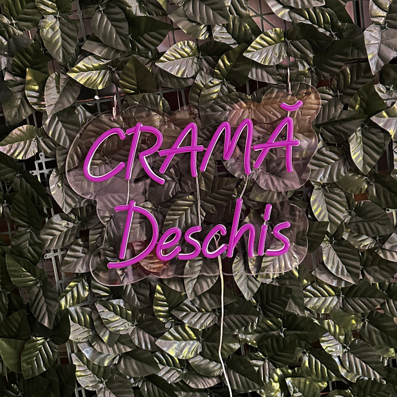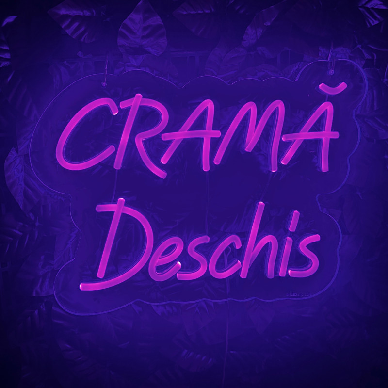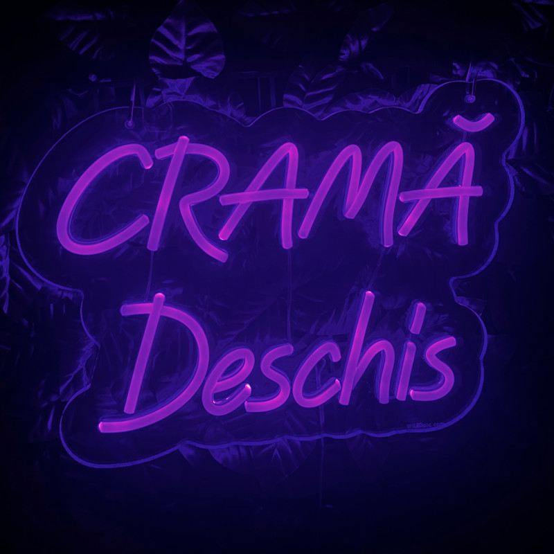 Setul de semne luminoase „CRAMA Deschis” și „FLORARIE Deshis” funcționează ca repere de orientare & identitate la intrare, pe fațadă sau în vitrină. Profil subțire, lumină uniformă, montaj curat și lizibilitate de la distanță; fotogenice în foto/video. Personalizabile rapid (dimensiuni, culori, finisaje, font) pentru a se potrivi esteticii unei crame/wine-bar și a unei florării.