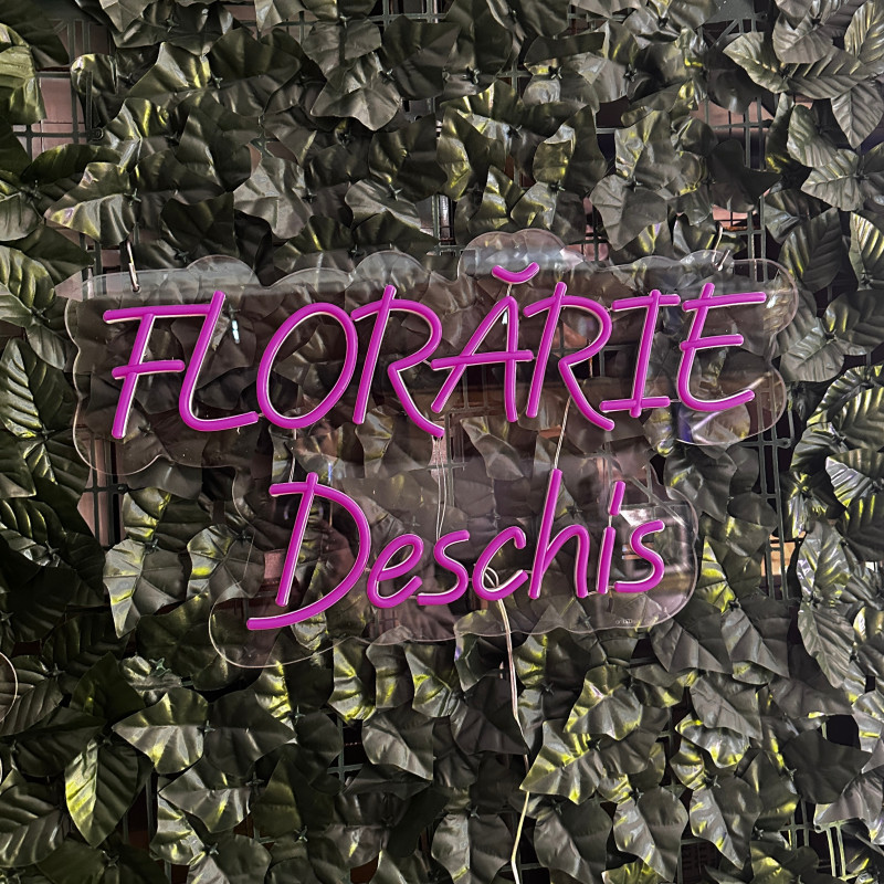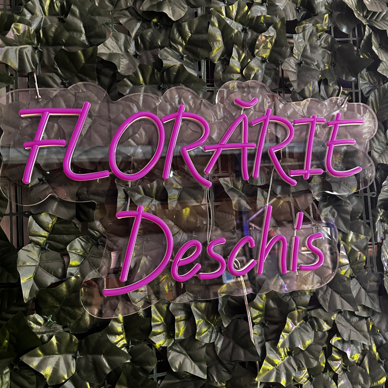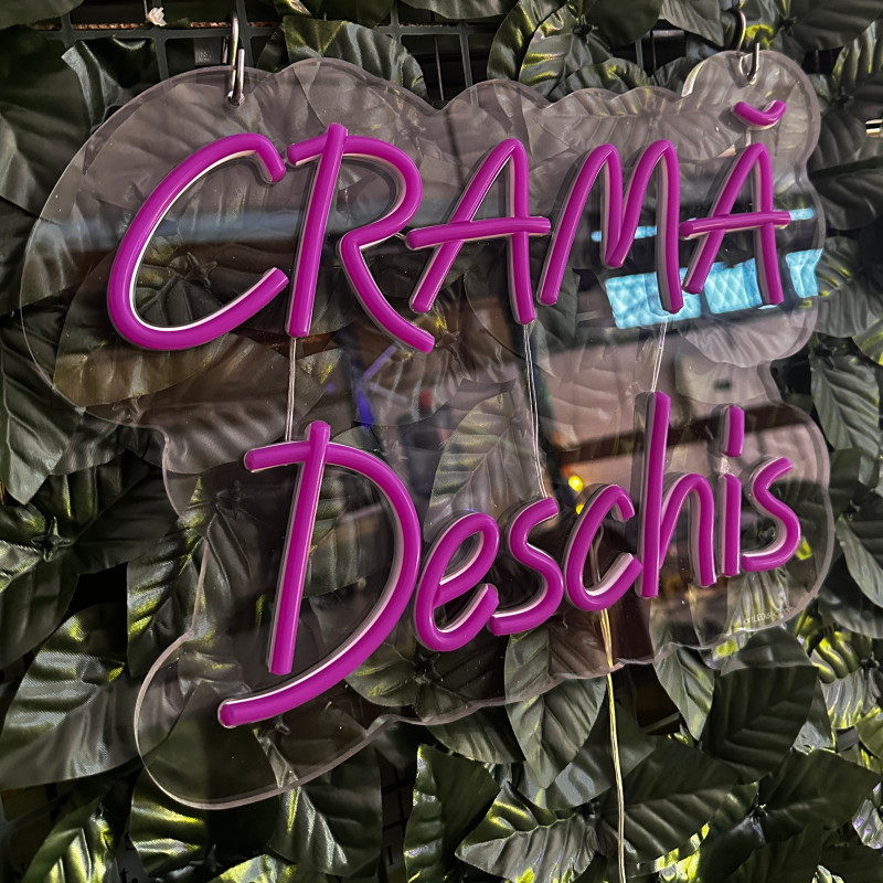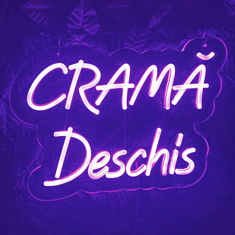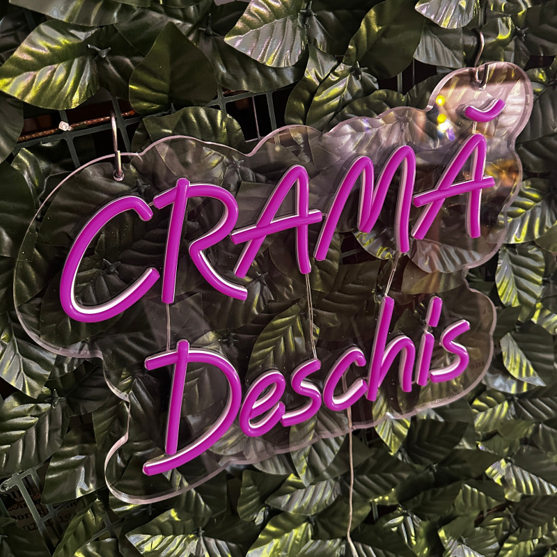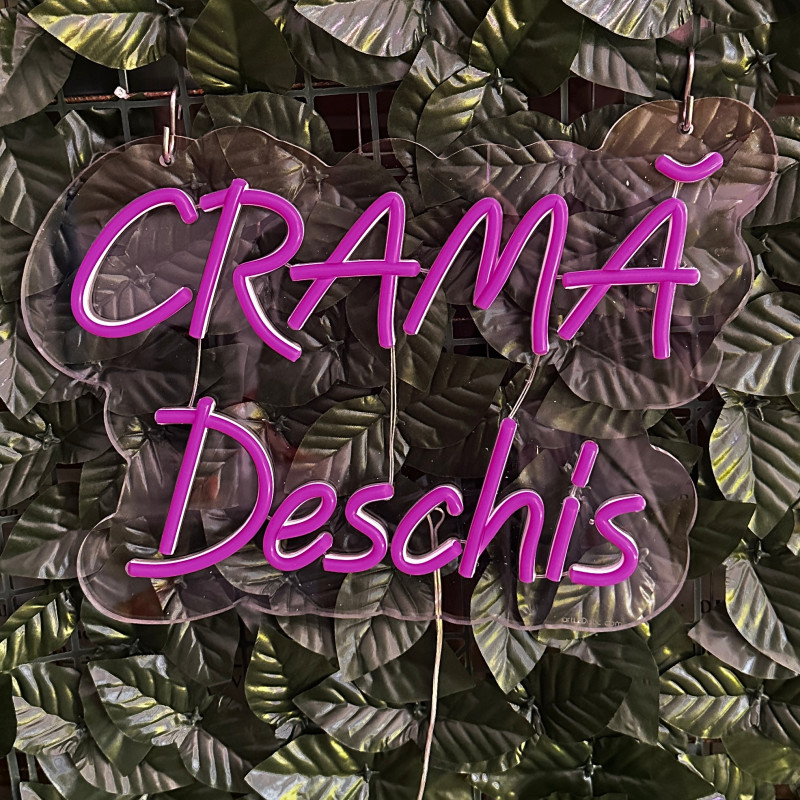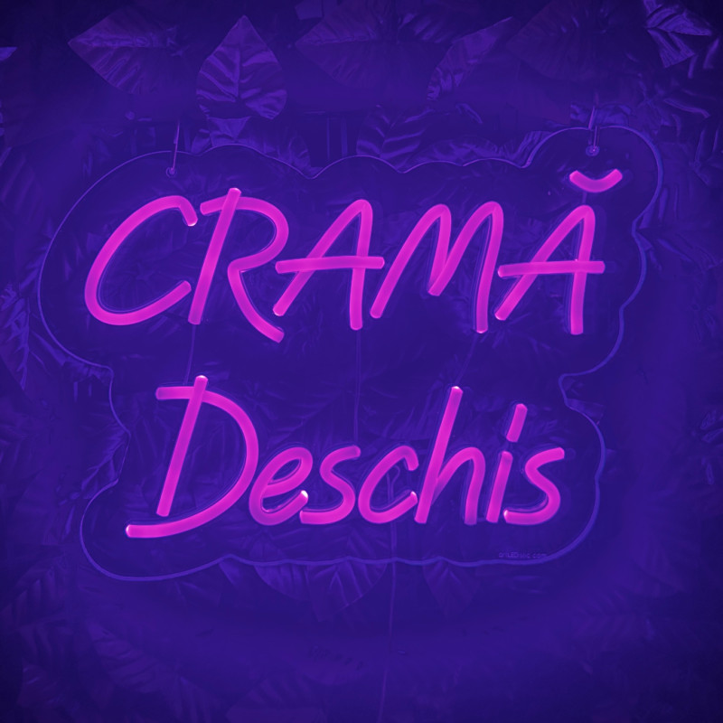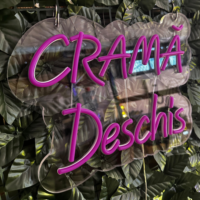 Setul de semne luminoase „CRAMA Deschis” și „FLORARIE Deshis” funcționează ca repere de orientare & identitate la intrare, pe fațadă sau în vitrină. Profil subțire, lumină uniformă, montaj curat și lizibilitate de la distanță; fotogenice în foto/video. Personalizabile rapid (dimensiuni, culori, finisaje, font) pentru a se potrivi esteticii unei crame/wine-bar și a unei florării.